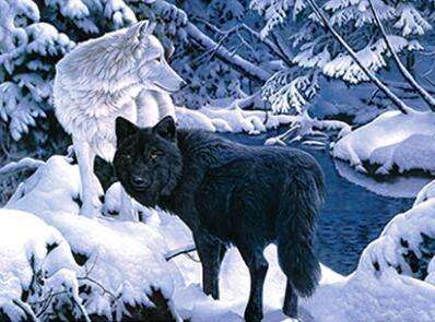 4D Art Black and White Wolves- 30x40cm