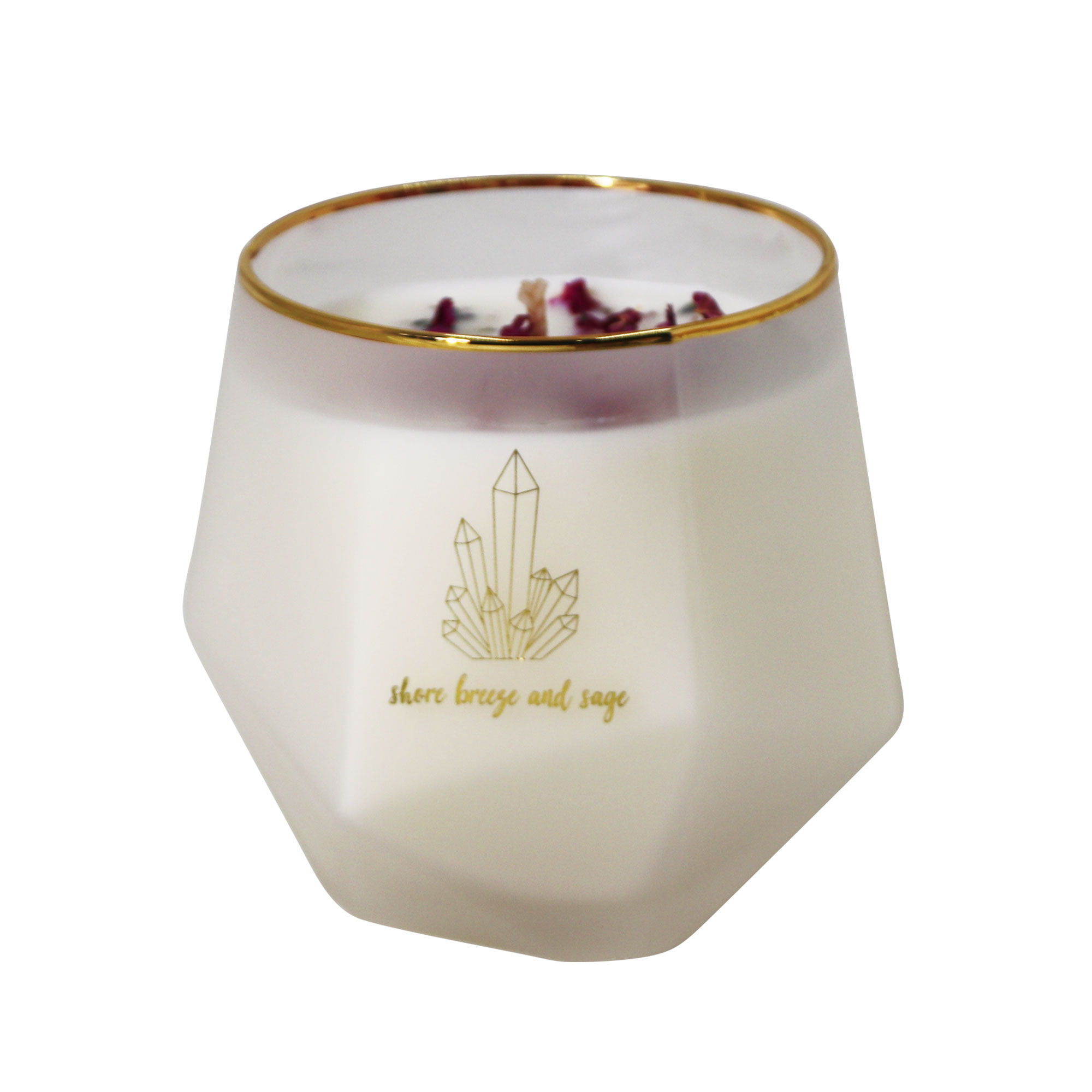 Amethyst & Rose Quartz Infused Soy Candle Shore Breeze & Sage