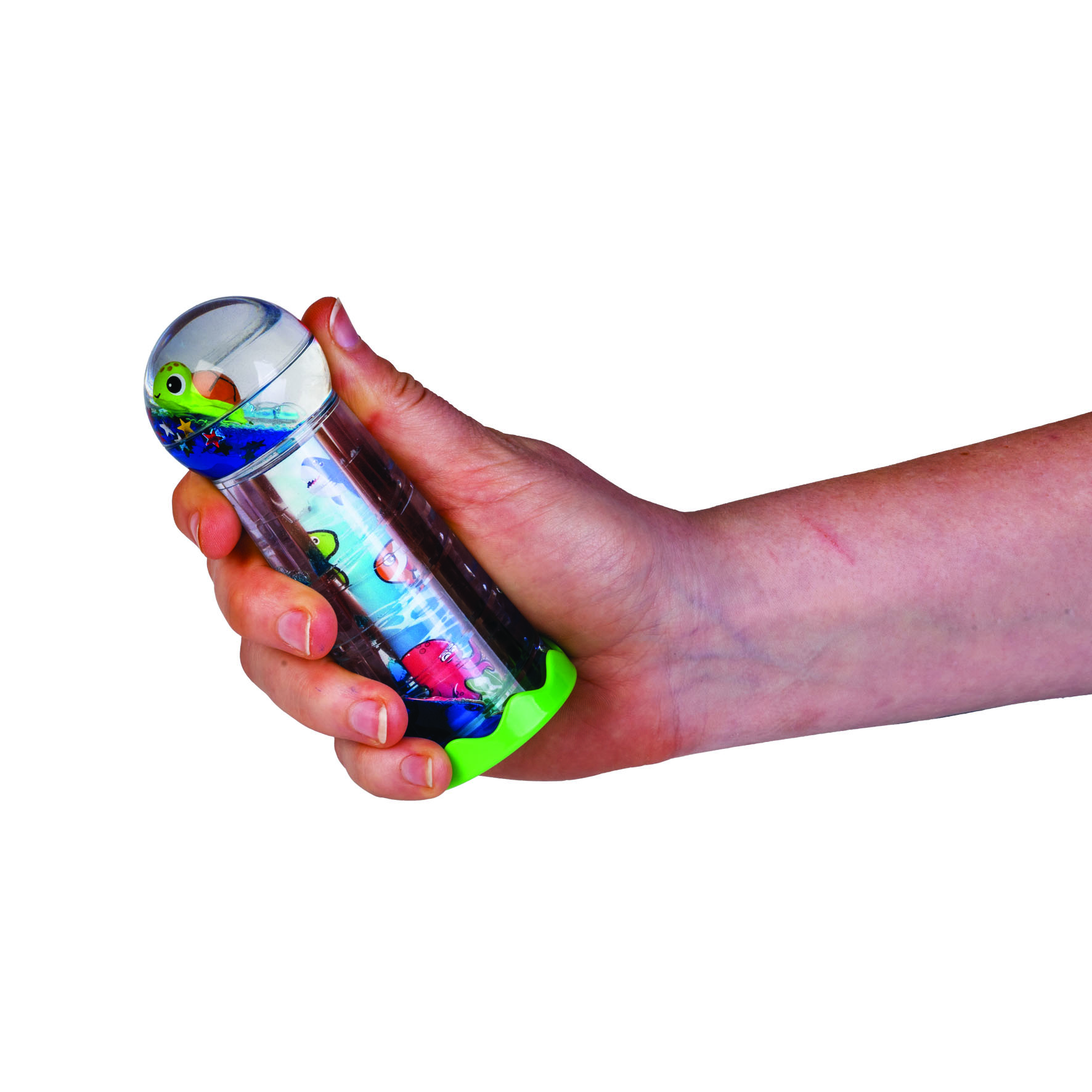 Aqua World’s Turtle Liquid Timer Kaleidoscope offers endless play in colourful new ways! Floating inside the globe are glitter stars and a splashing mini turtle. Watch as the blue droplets make their way down the spiral steps, then look through the base – it’s a kaleidoscope! Flip, shake, twist and turn for infinite fun!