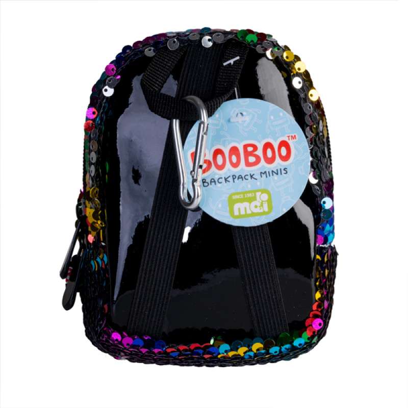 The Aurora Sequins BooBoo Backpack Mini is the ultimate on-the-go accessory! Enjoy its compact size, functionality and dynamic print, featuring rainbow/silver reversible flip sequins and a metallic rainbow front pocket. Plus, it has elastic straps and a handy carabiner clip for versatile attachment options. Tiny but mighty, it’s ideal for snacks, school and everyday adventures. With BooBoo Backpack Minis, no journey is too small!