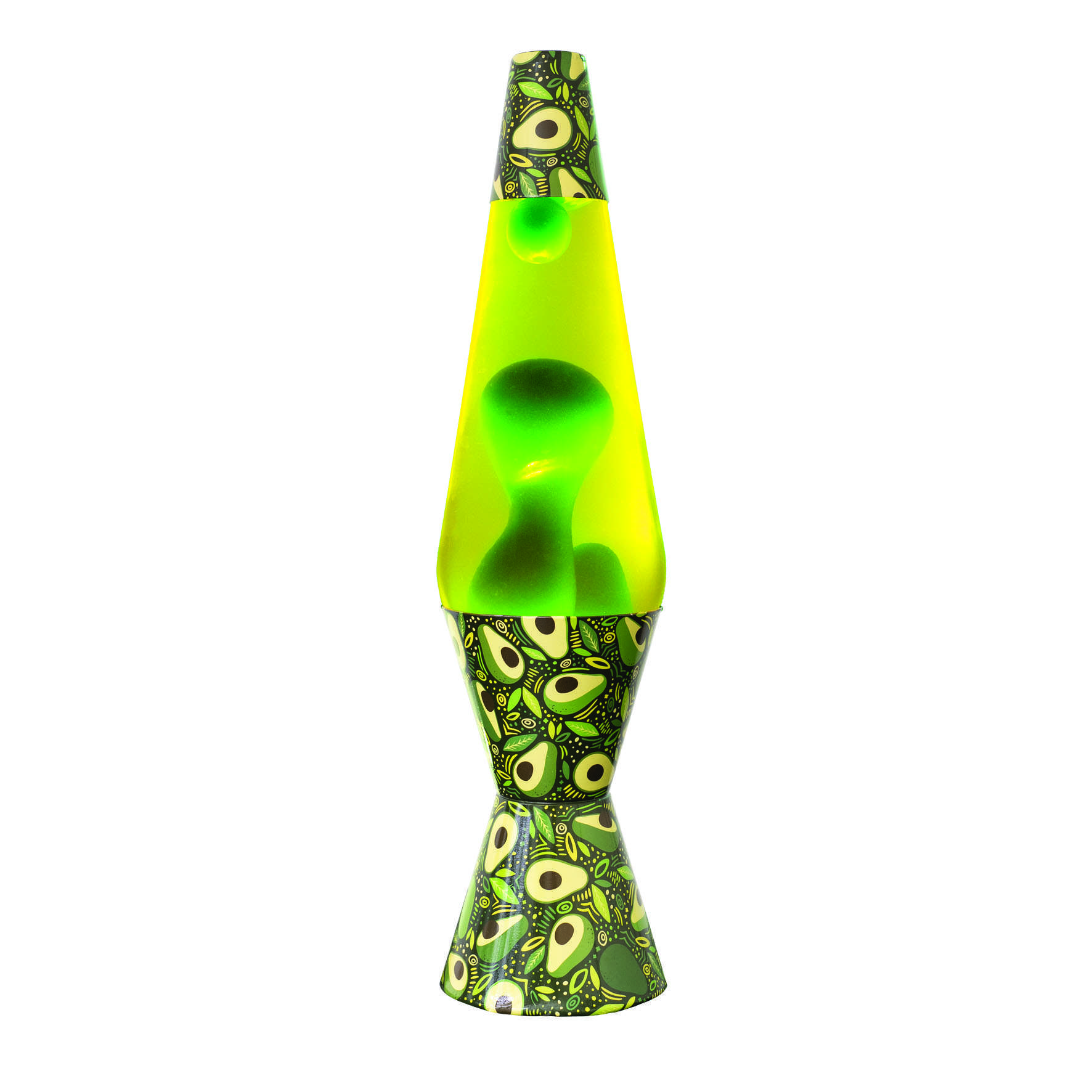 - Features yellow liquid with green lava that swirls and ripples when lit