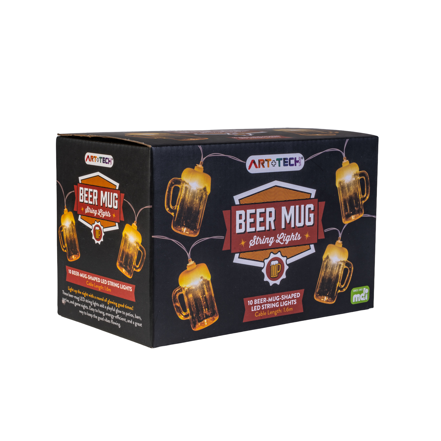 • Ten glowing beer mug-shaped LED lights for maximum party impact
