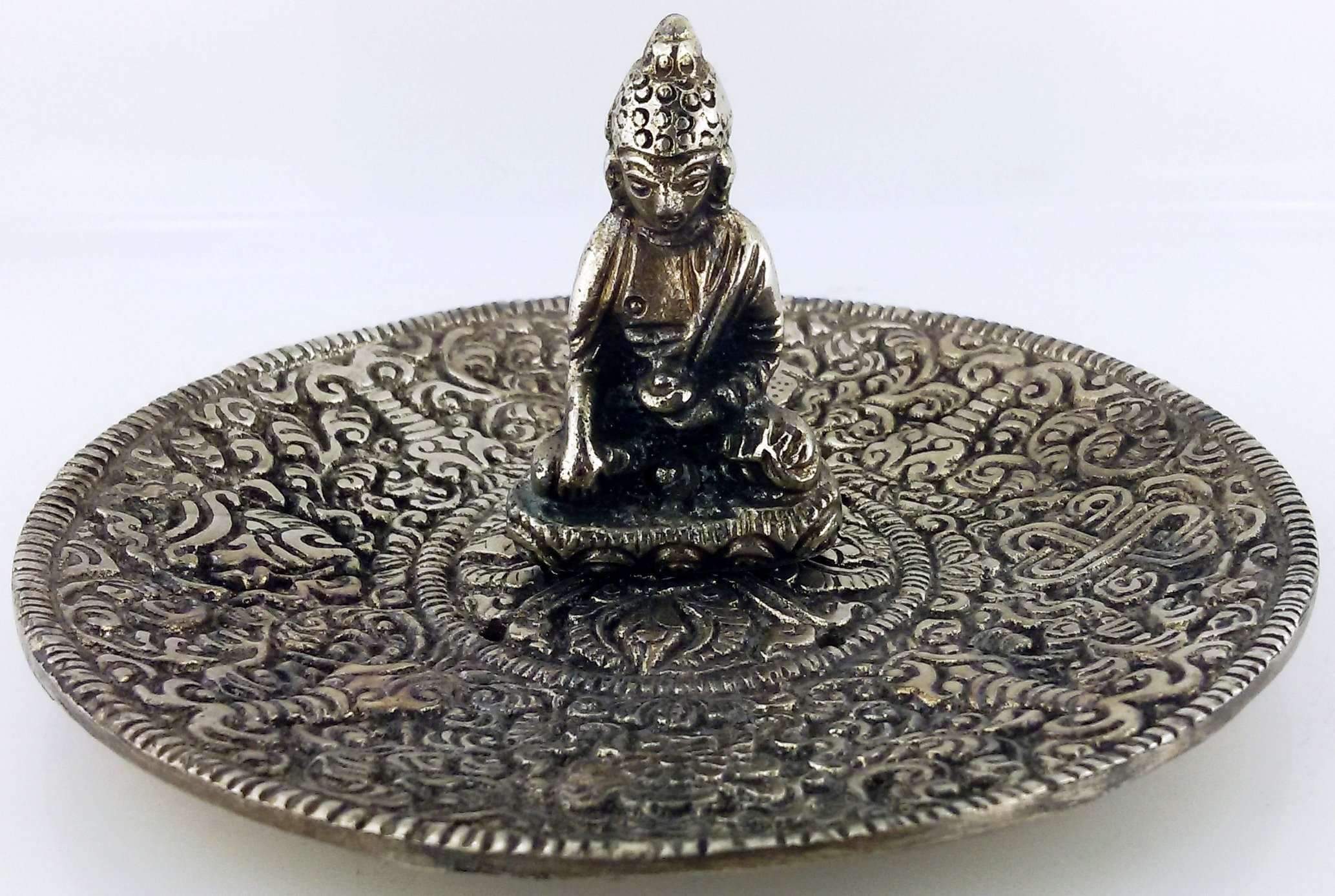 Buddha White Metal Incense Stick and Cone Burner