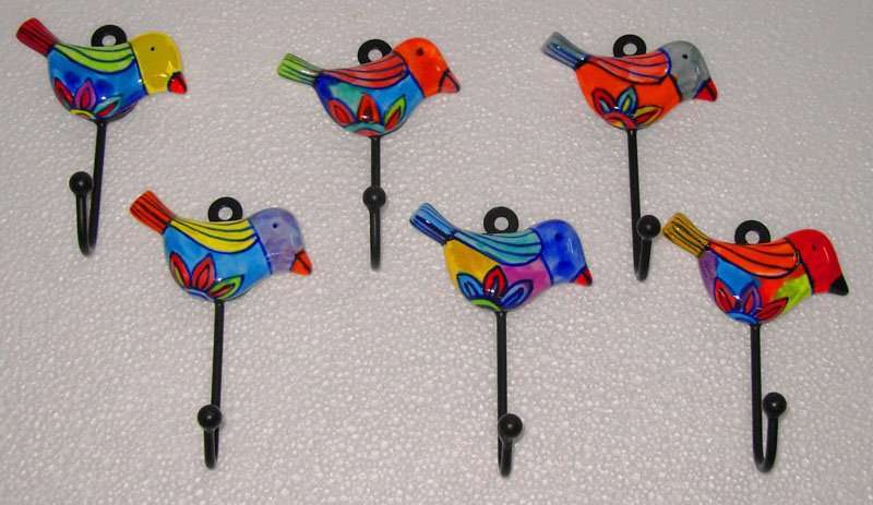 Ceramic Hooks Birds Set of 6 Assorted
