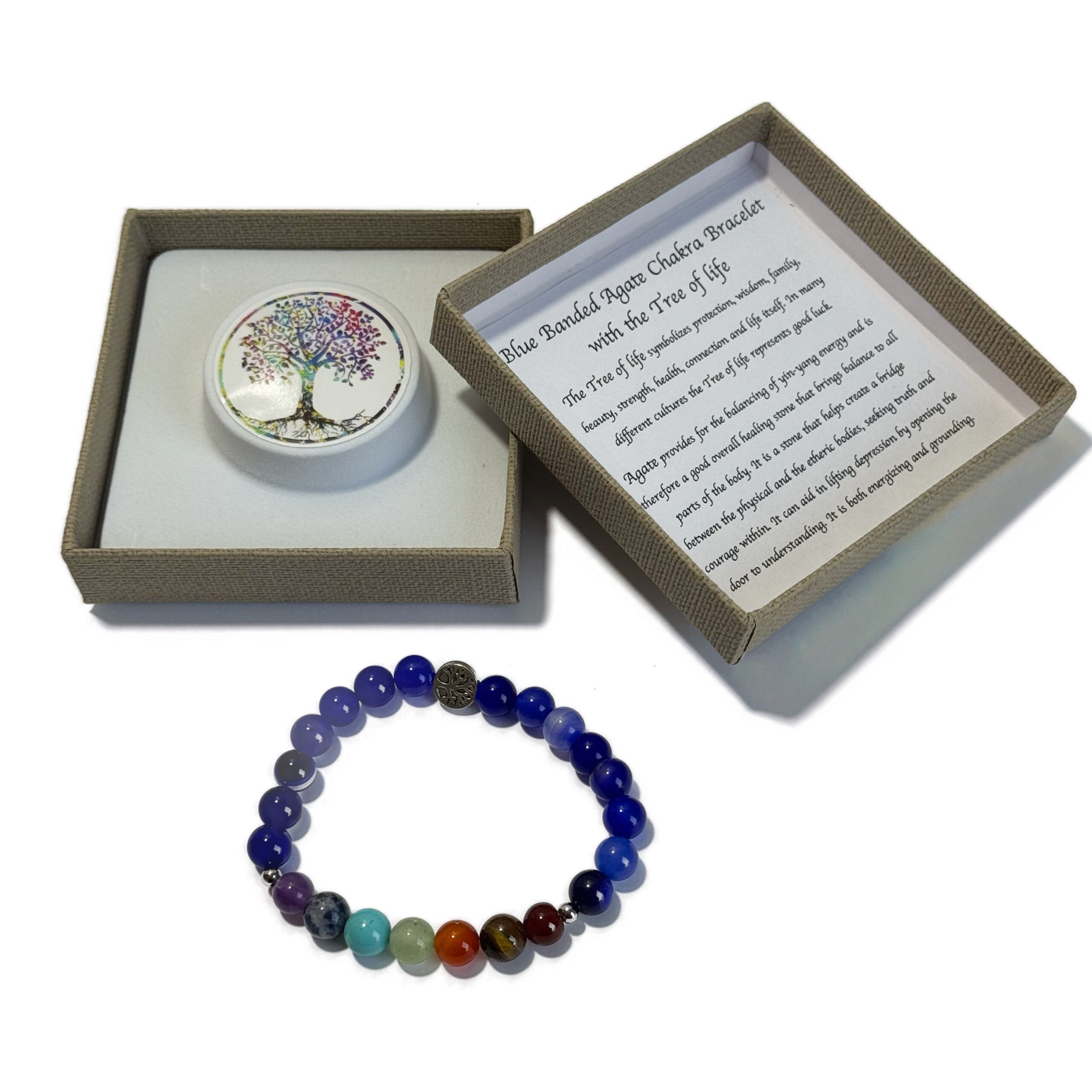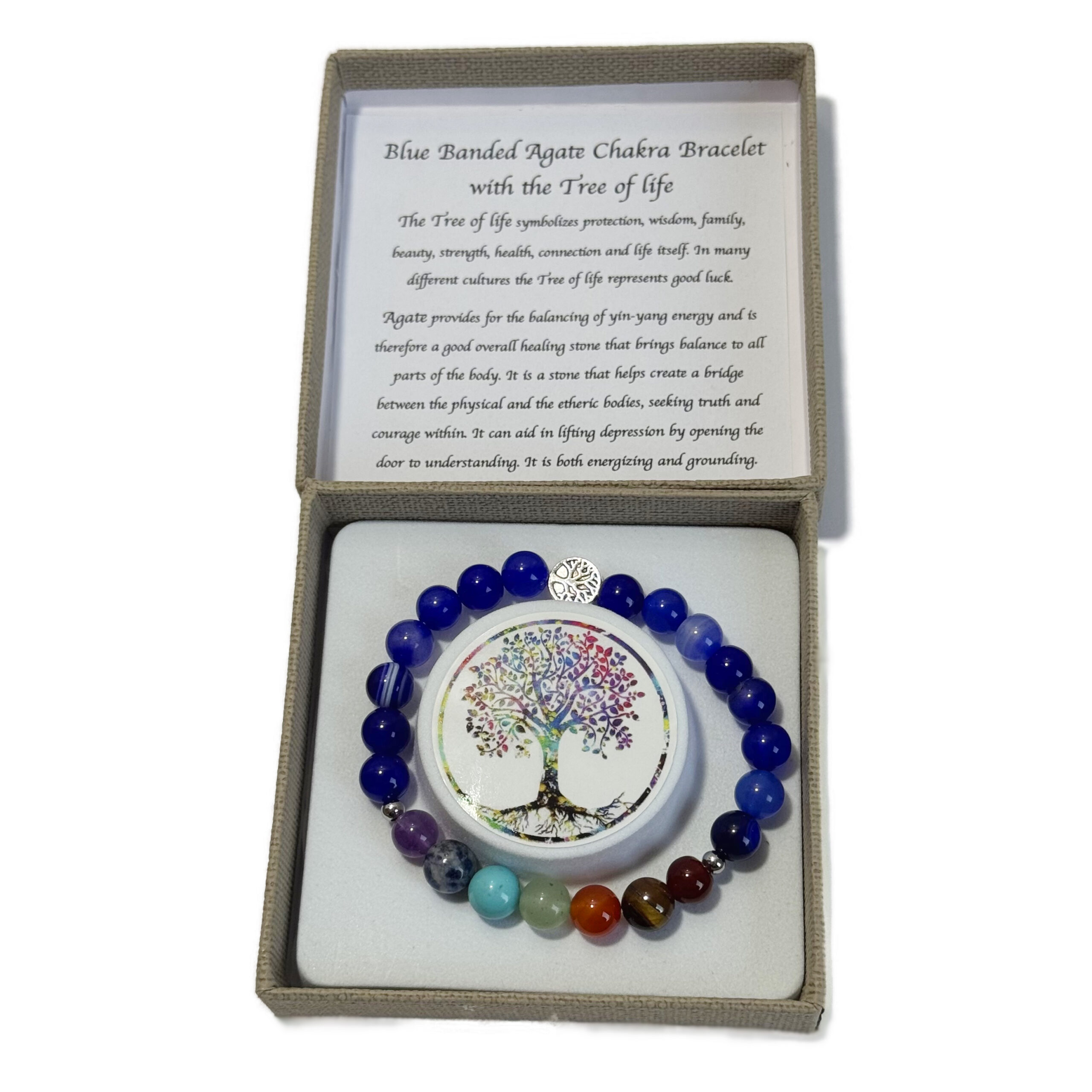 Chakra Bracelet Blue Banded Agate & Tree of Life Bead