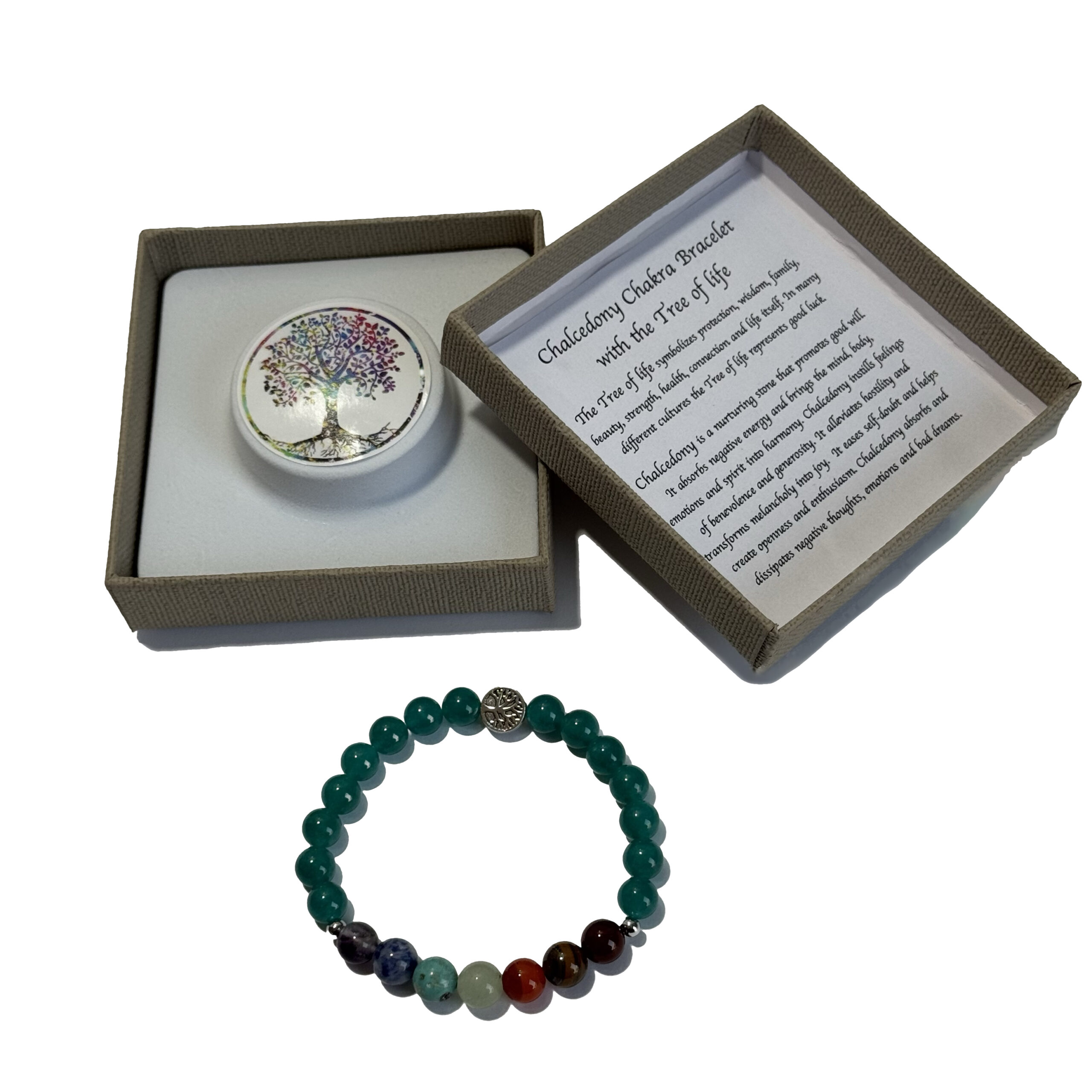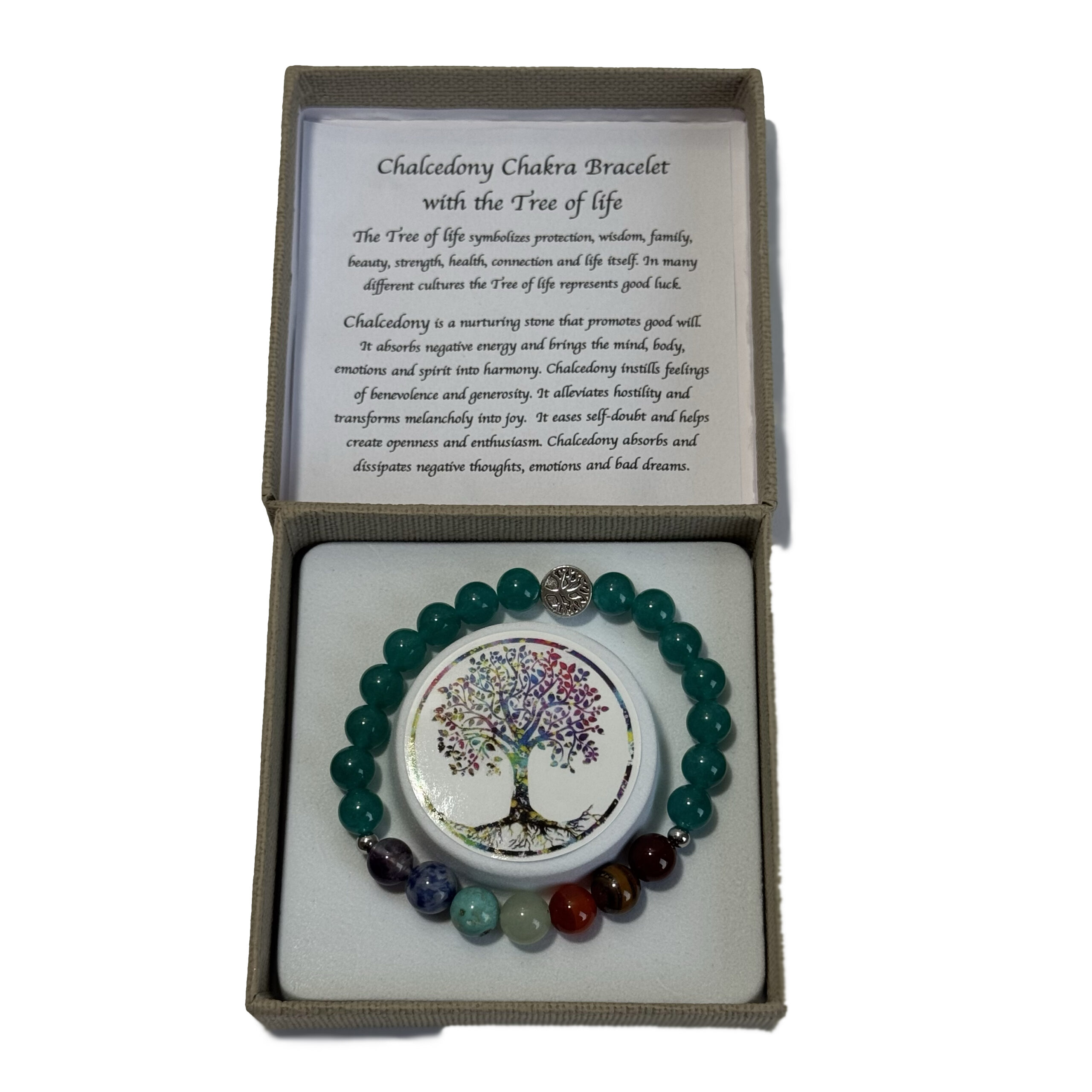 Chakra Bracelet Chalcedony & Tree of Life Bead