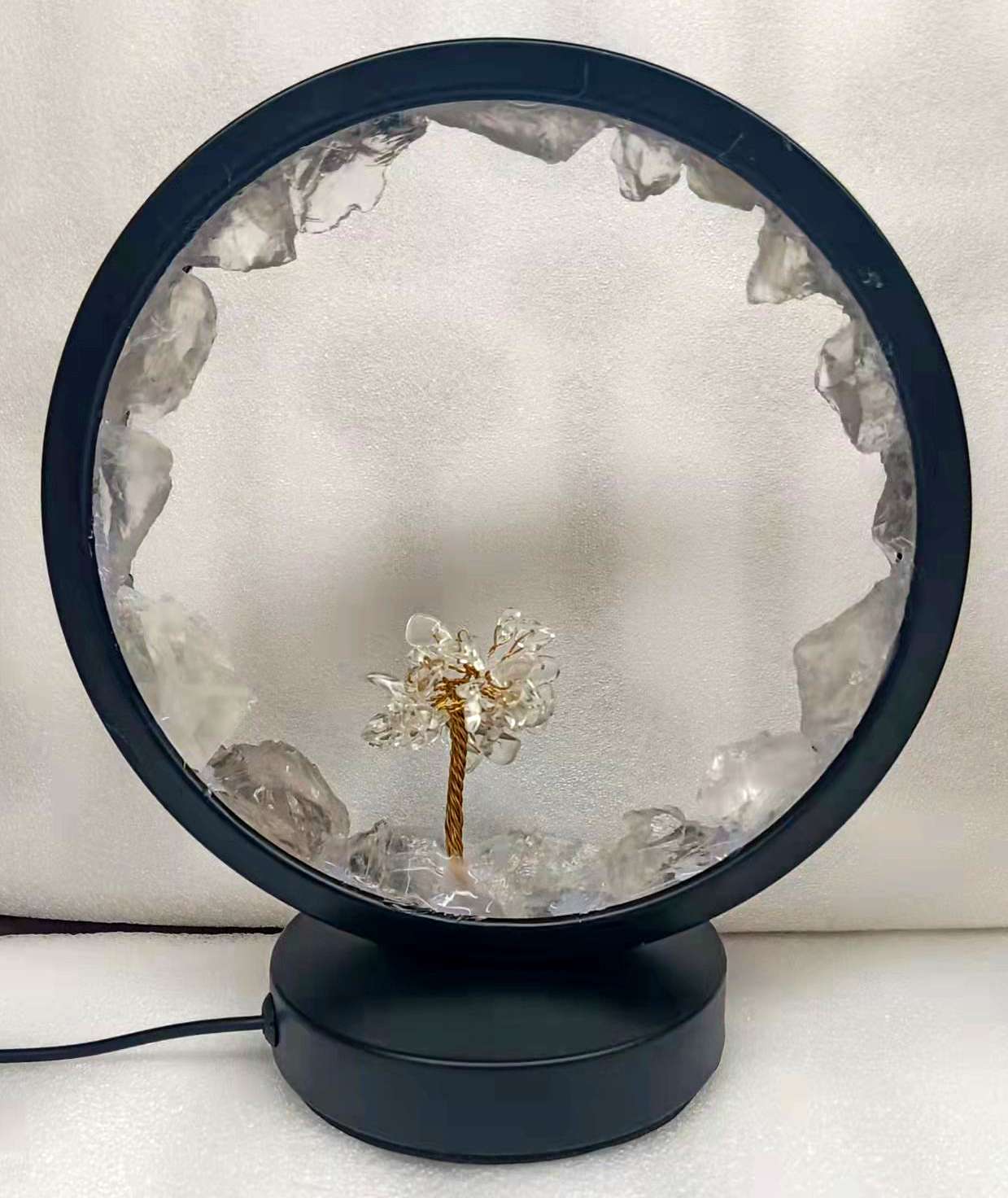 Clear Quartz LED USB Lamp with Gemstone Tree