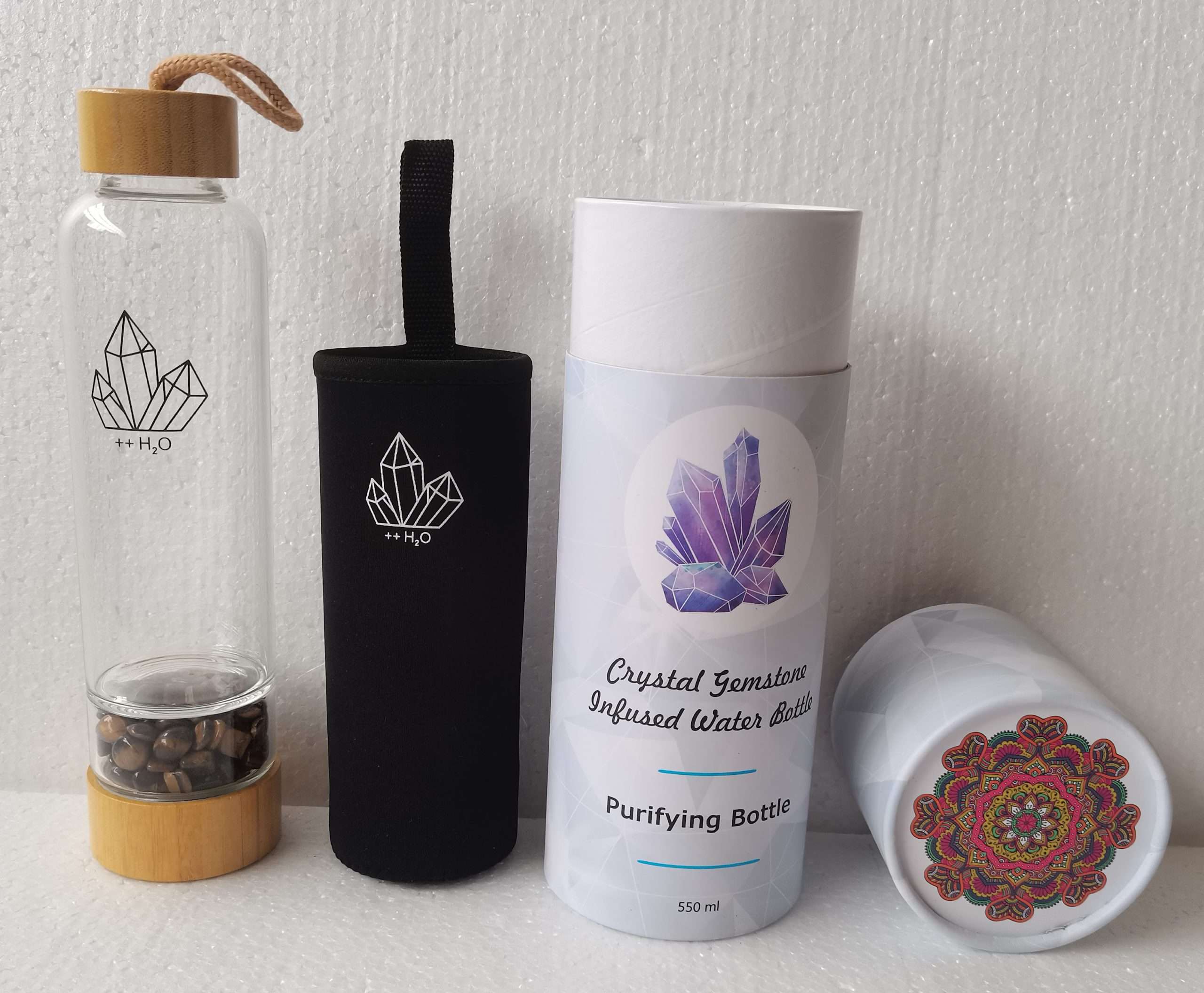Bamboo lid and base. Comes in a Coloured Box and a Neoprene Sleeve