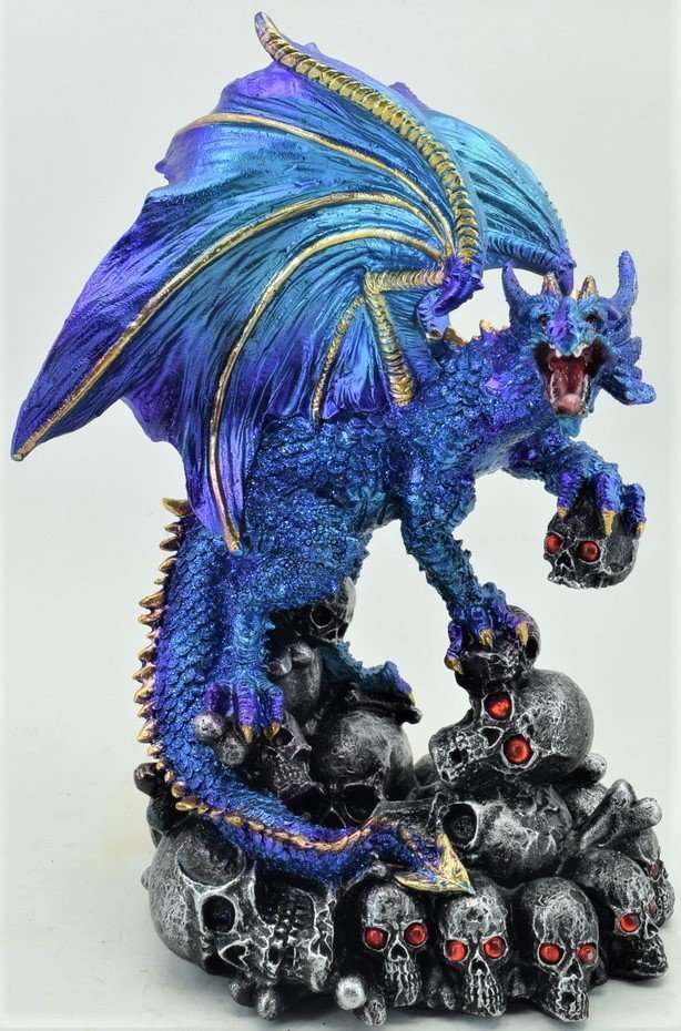 Dragon Holding Skull Blue