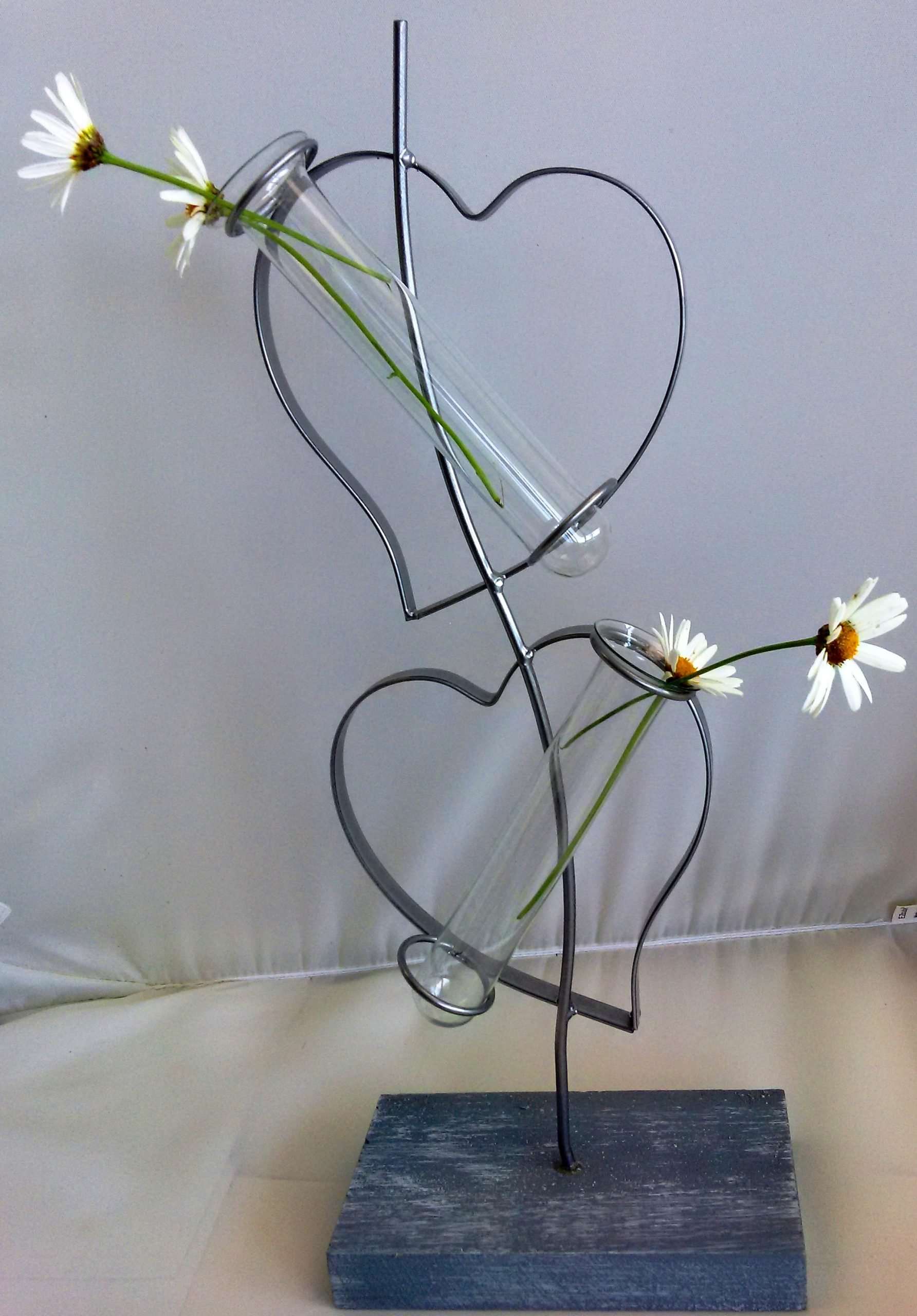 Flower Holder Hearts Wood Base
