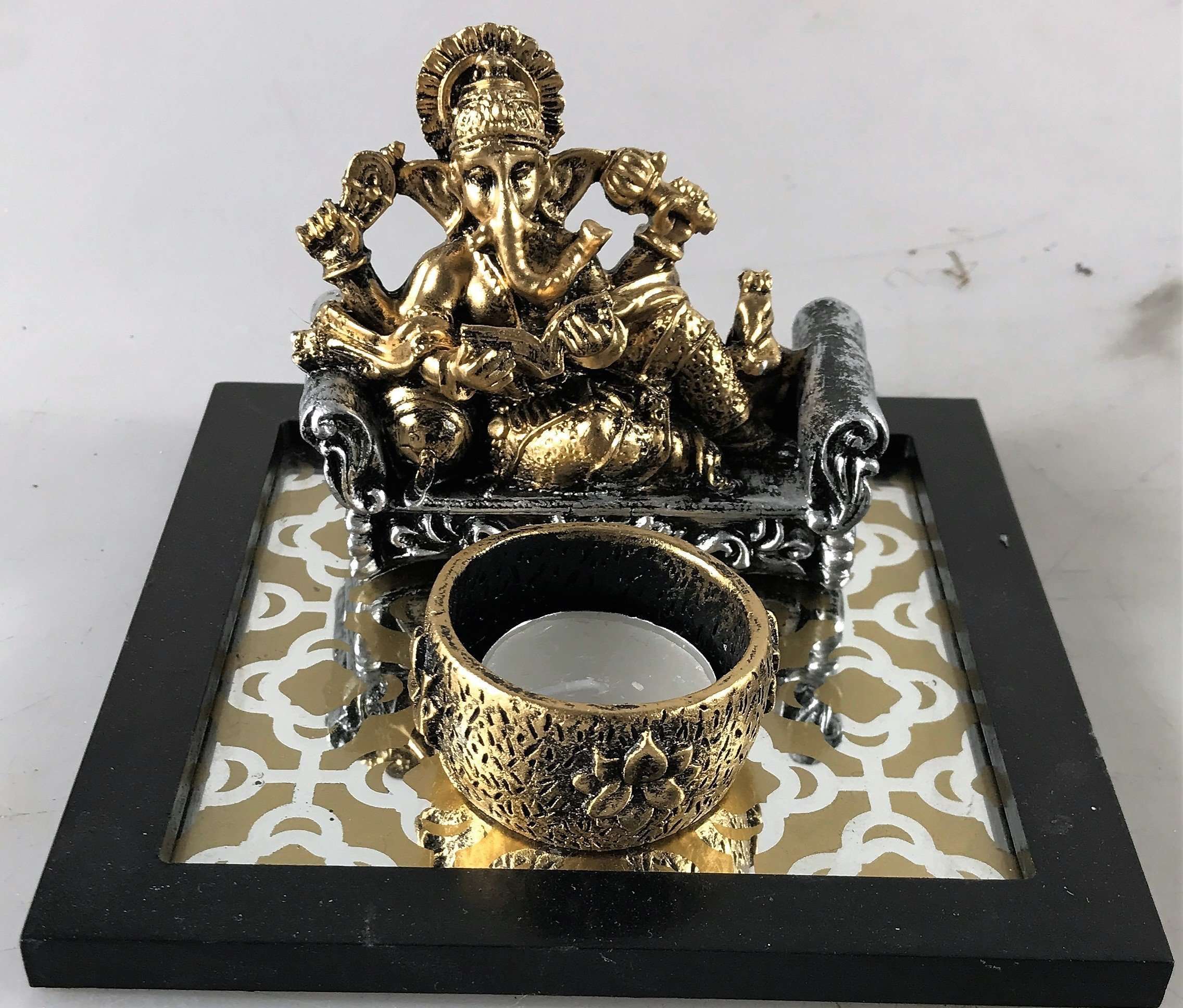 Ganesh Gold Candle Holder