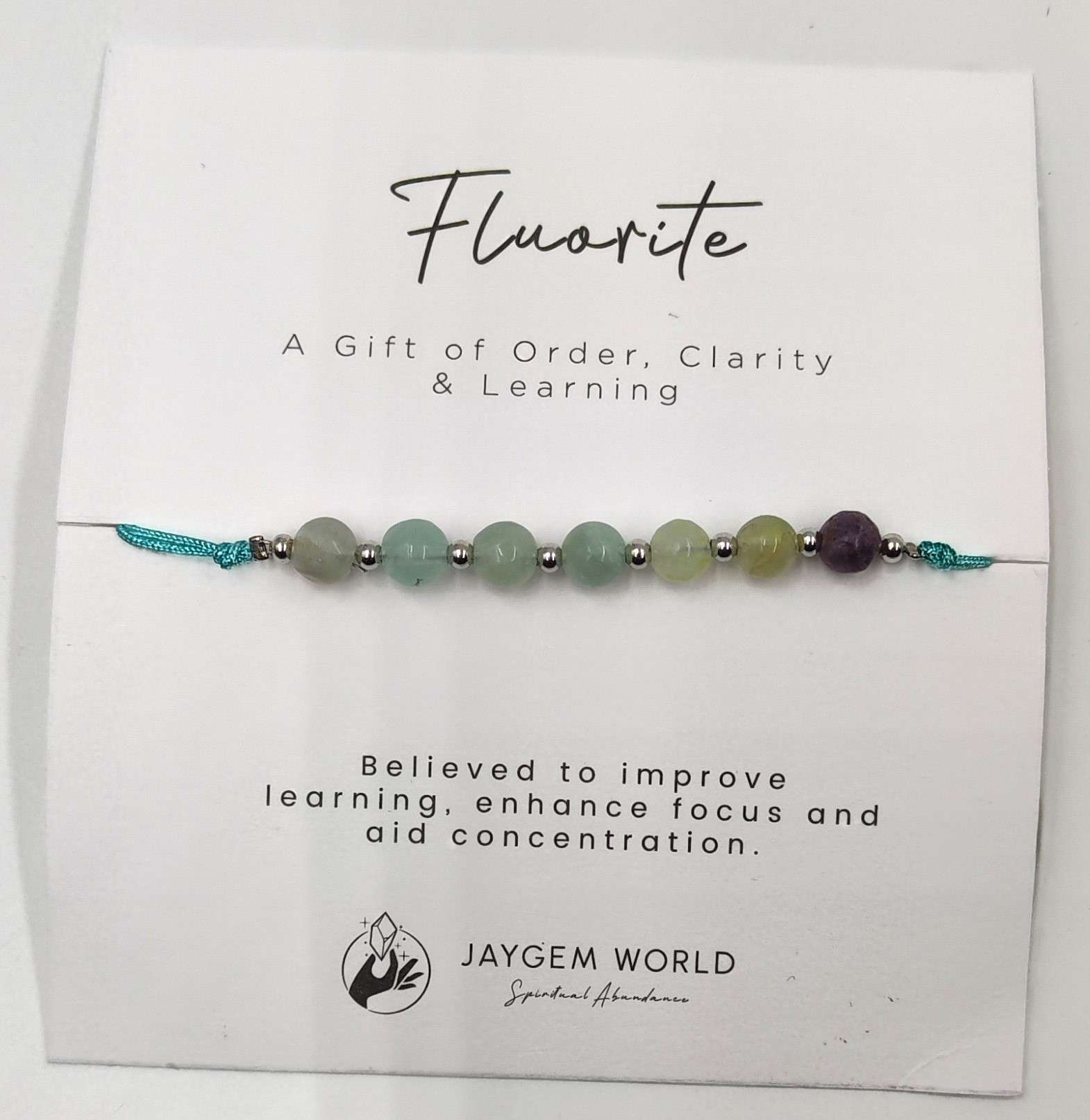 These bracelets come in Amethyst, Rose Quartz, Clear Quartz, Tiger Eye, Fluorite, Carnelian.
