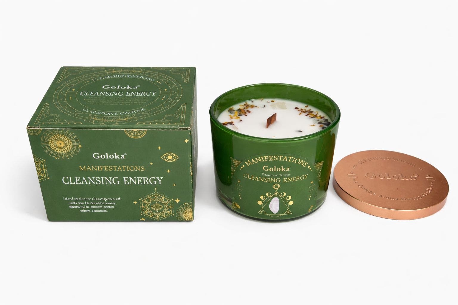 Goloka Manifestations Cleansing Energy 9oz Gemstone Infused Candle Selenite