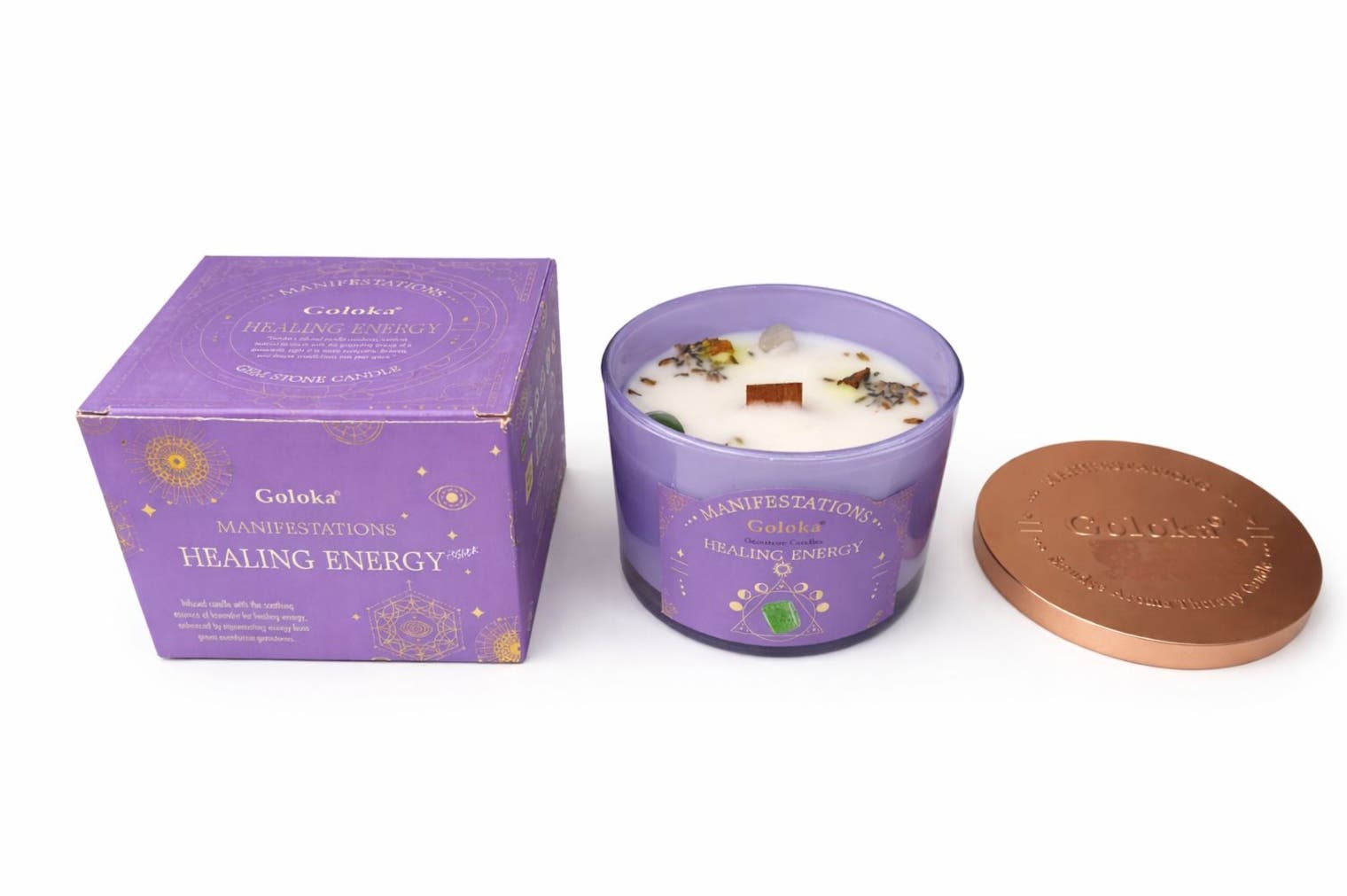 Goloka Manifestations Healing Energy 9oz Gemstone Infused Candle Green Aventurine