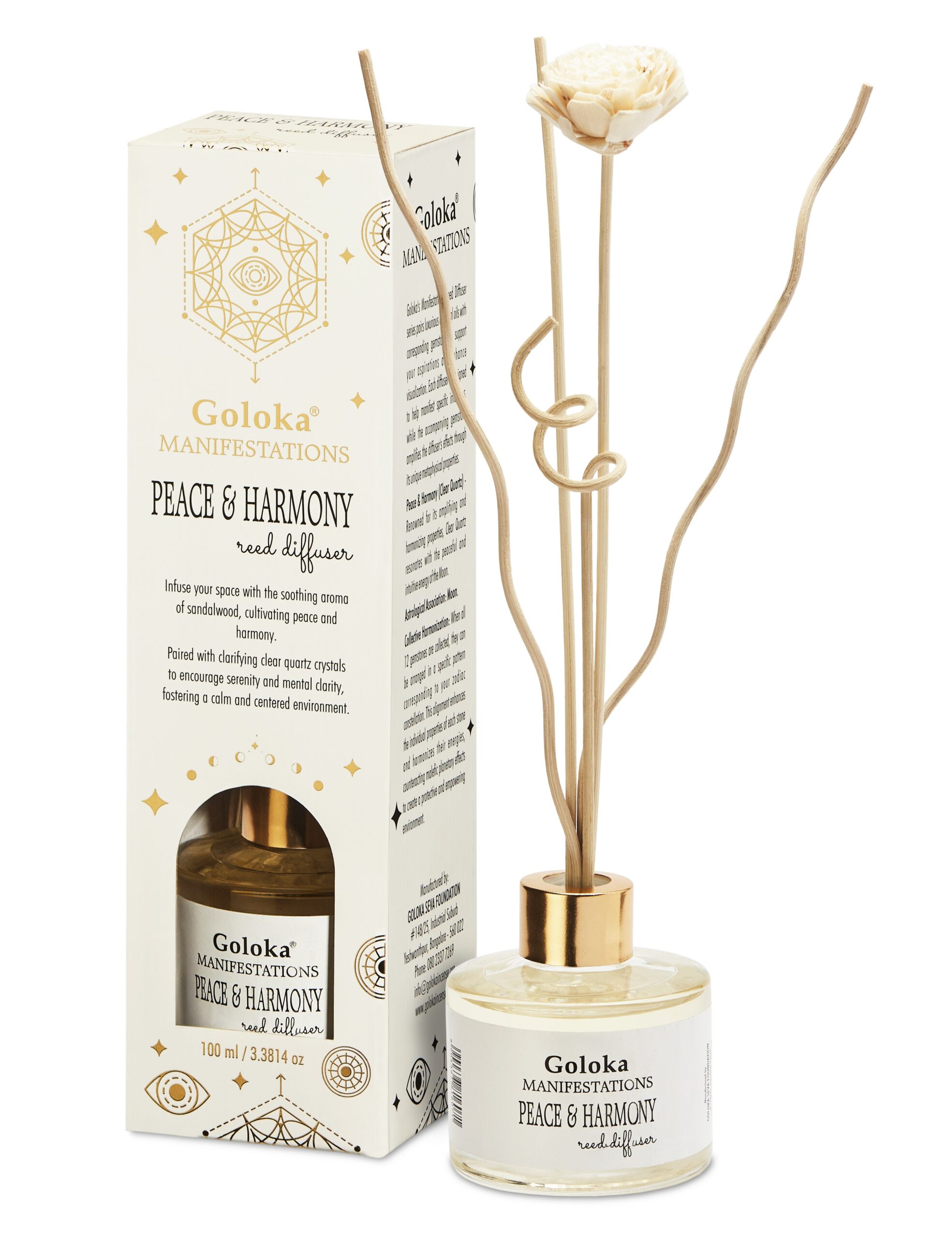 Goloka Manifestations Peace & Harmony Sandalwood & Clear Quartz Reed Diffuser