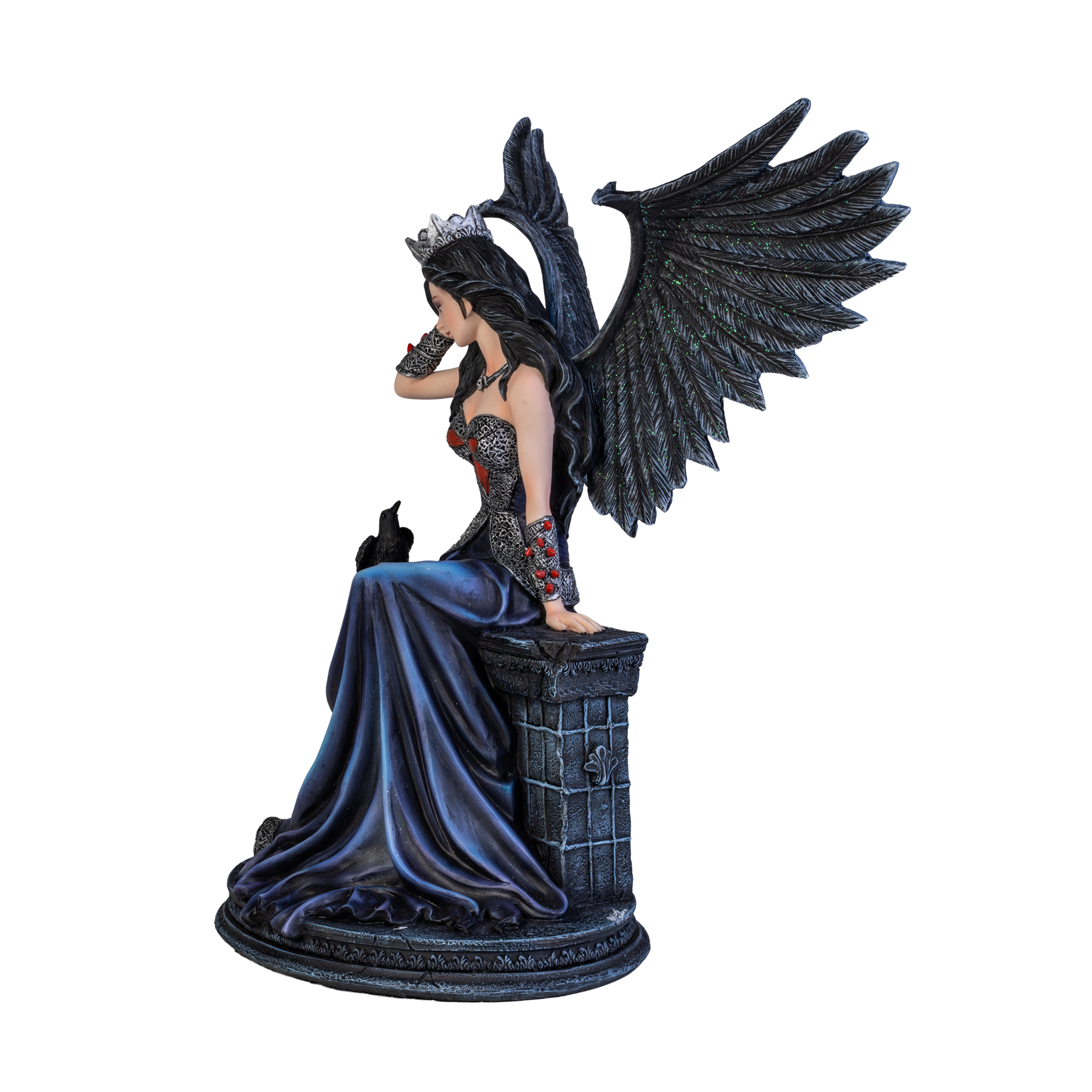 Step aside mere mortals and behold the Gothic Queen, the ultimate ruler of mysterious elegance and dark charm. Cloaked in a regal sapphire gown and crowned with a feathered tiara, she commands attention from her midnight throne. Her shimmering wings and heart-shaped details give off major enchanted vibes, making her the perfect centerpiece for anyone who finds beauty in the shadows. Whether she is channeling her inner raven or plotting her next magical adventure, this dazzling figurine is here to slay your decor game. Bring home your new favorite sovereign and let the magic begin!