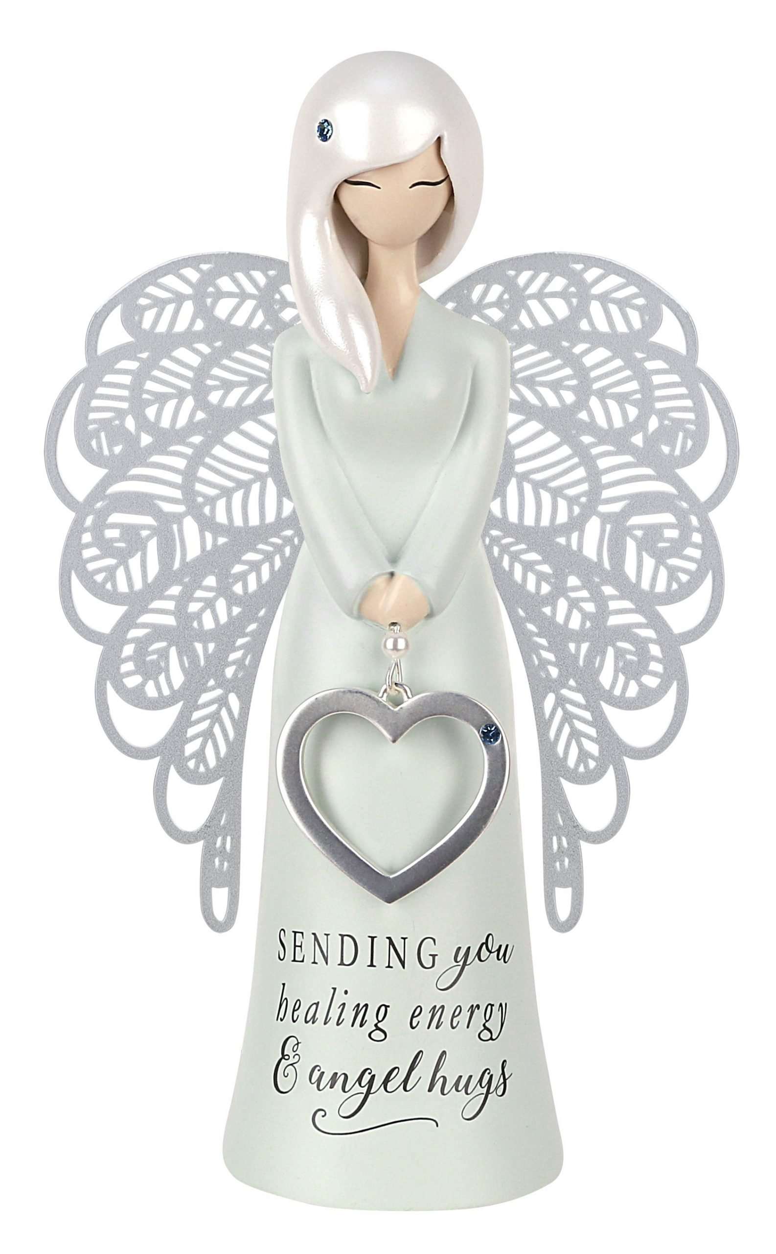 Moulded polyresin with metal wings, heart- shaped metal charm with debossed sentiment and jewel embellishments. Charm/wing colours are silver, matt gold or matt rose gold. Wings are laser cut.