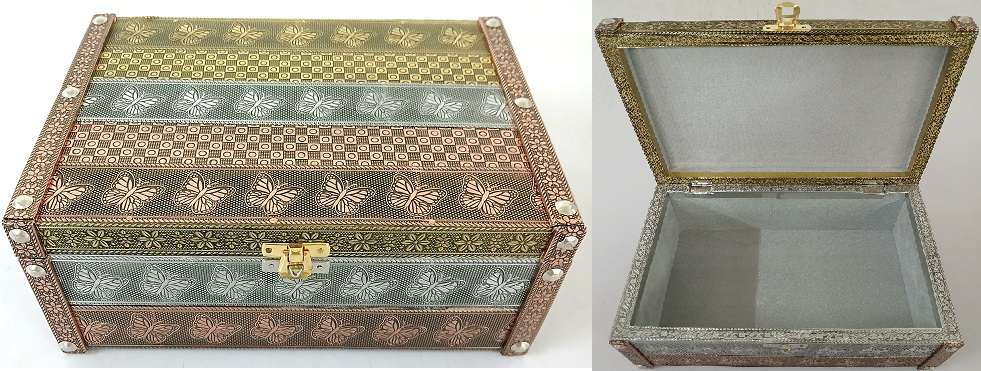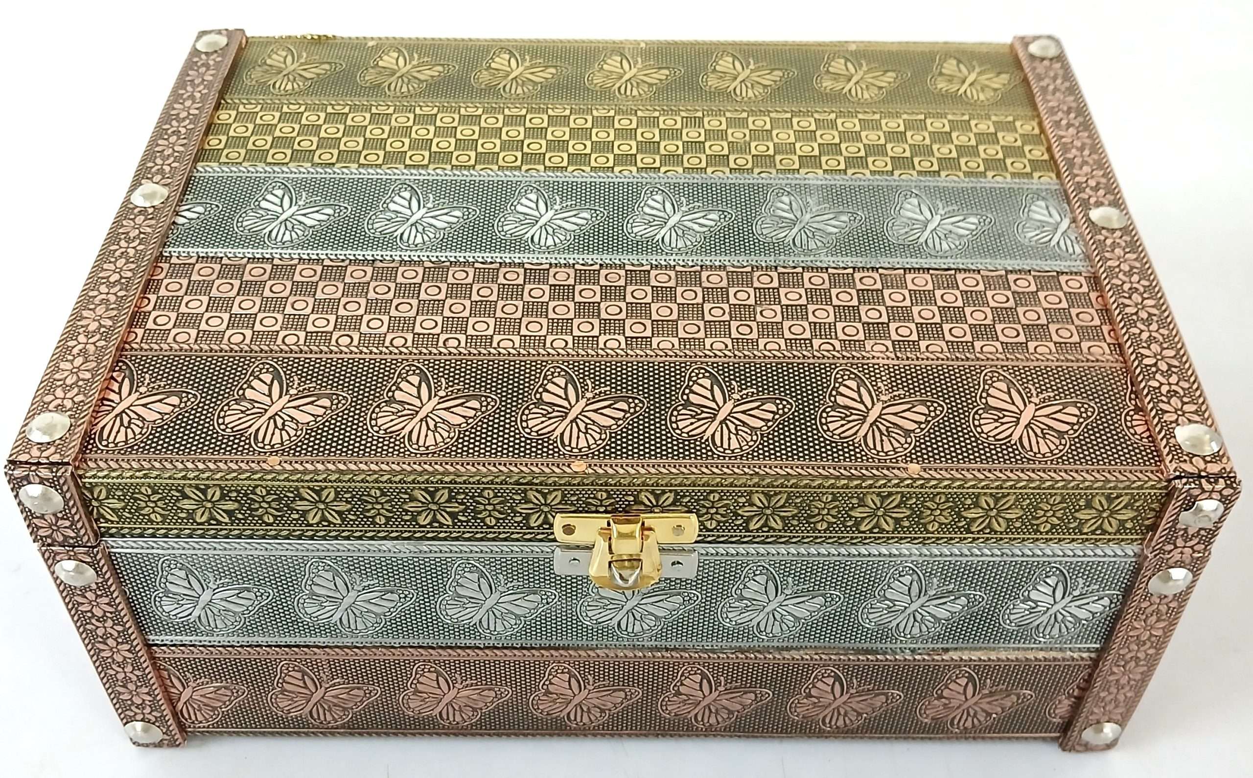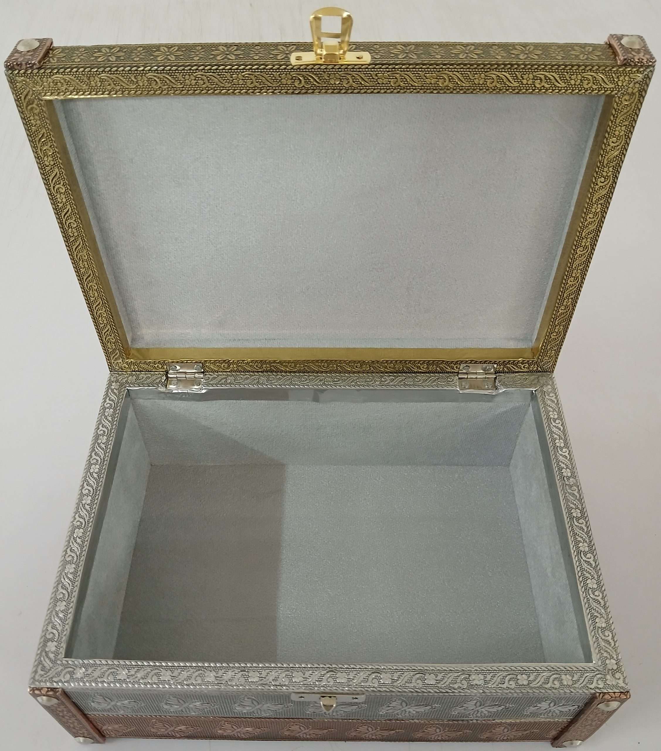 Dimensions: 25.4 x 17.8 x 10.2cm, Gold, Bronze and Silver Finish, Grey Velvet Lining