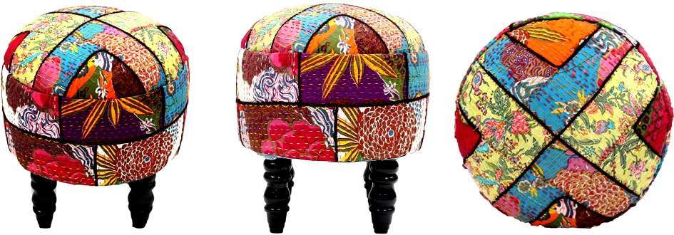 Hand-embroidered Patchwork Kanta Stools from Jodhpur, India!