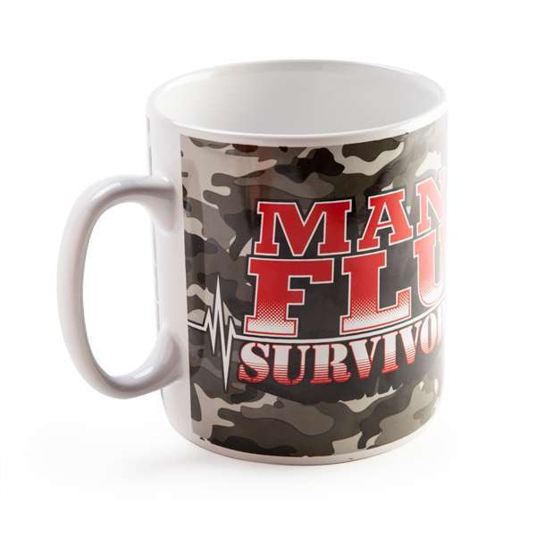 - Huge coffee mug with Man Flu Survivor text on army camouflage background