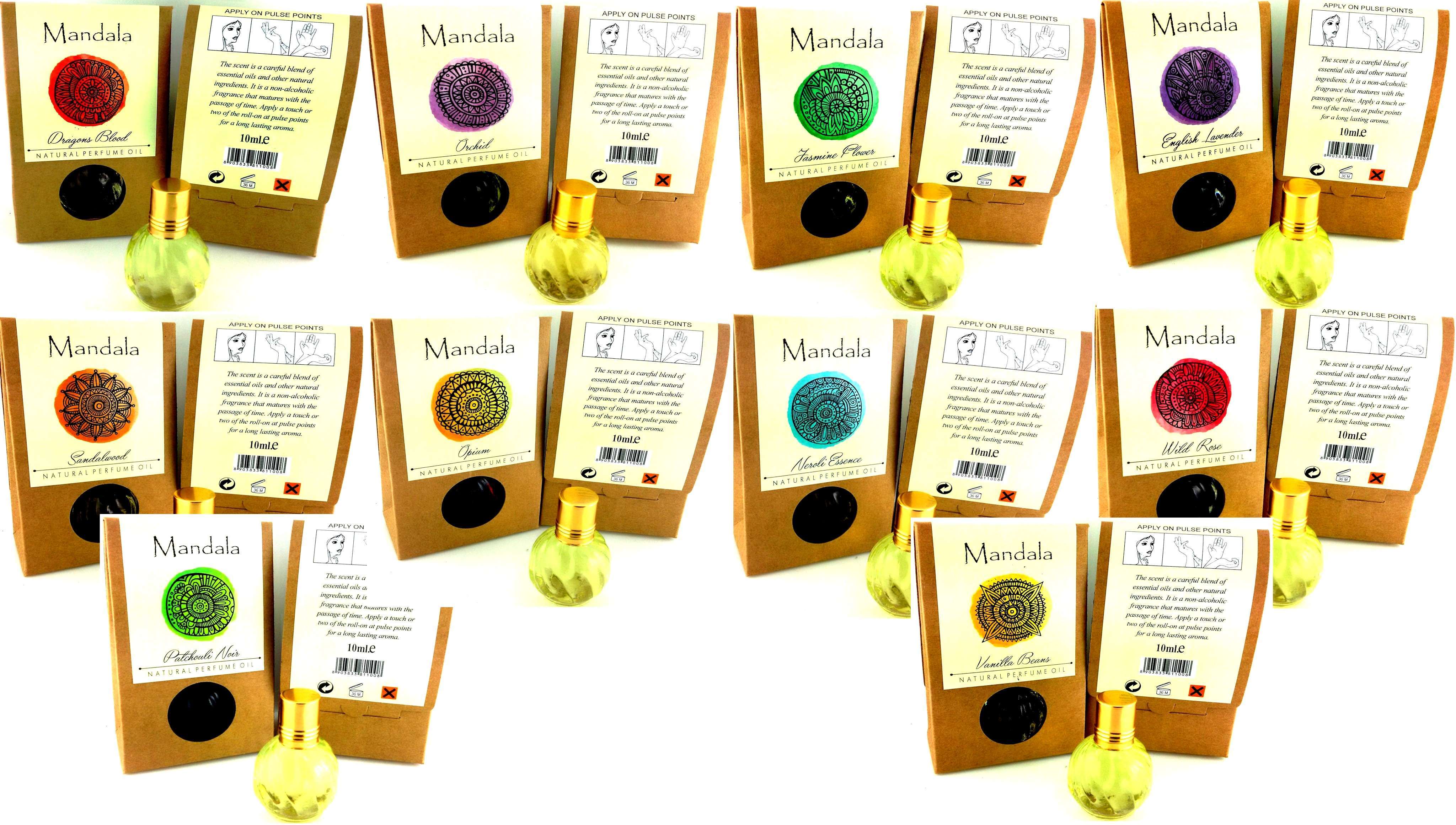 Mandala Natural Perfume Oil 4 each of 9 fragrances+ 1 FREE sample each 45 perfumes in total 10ml