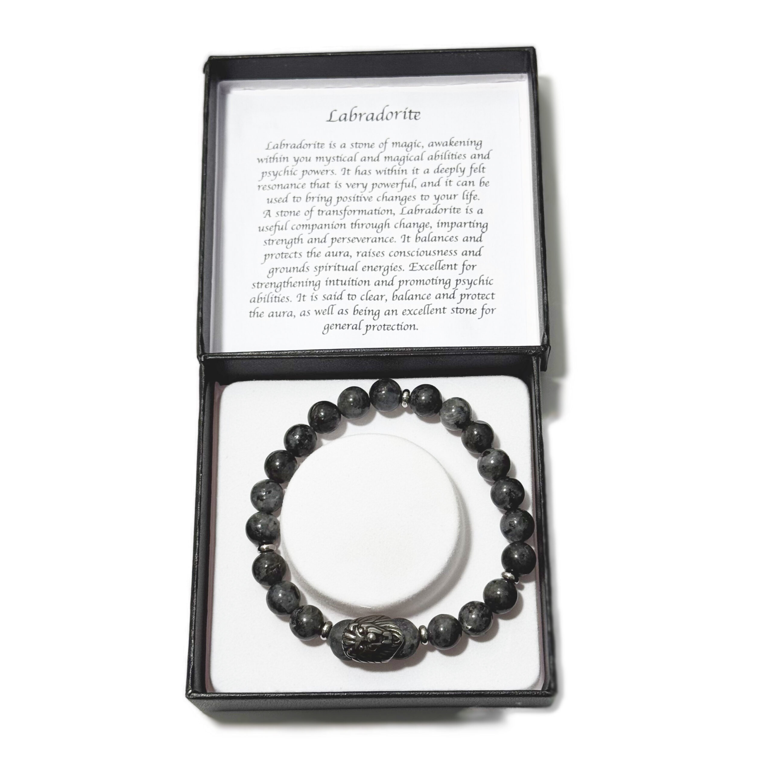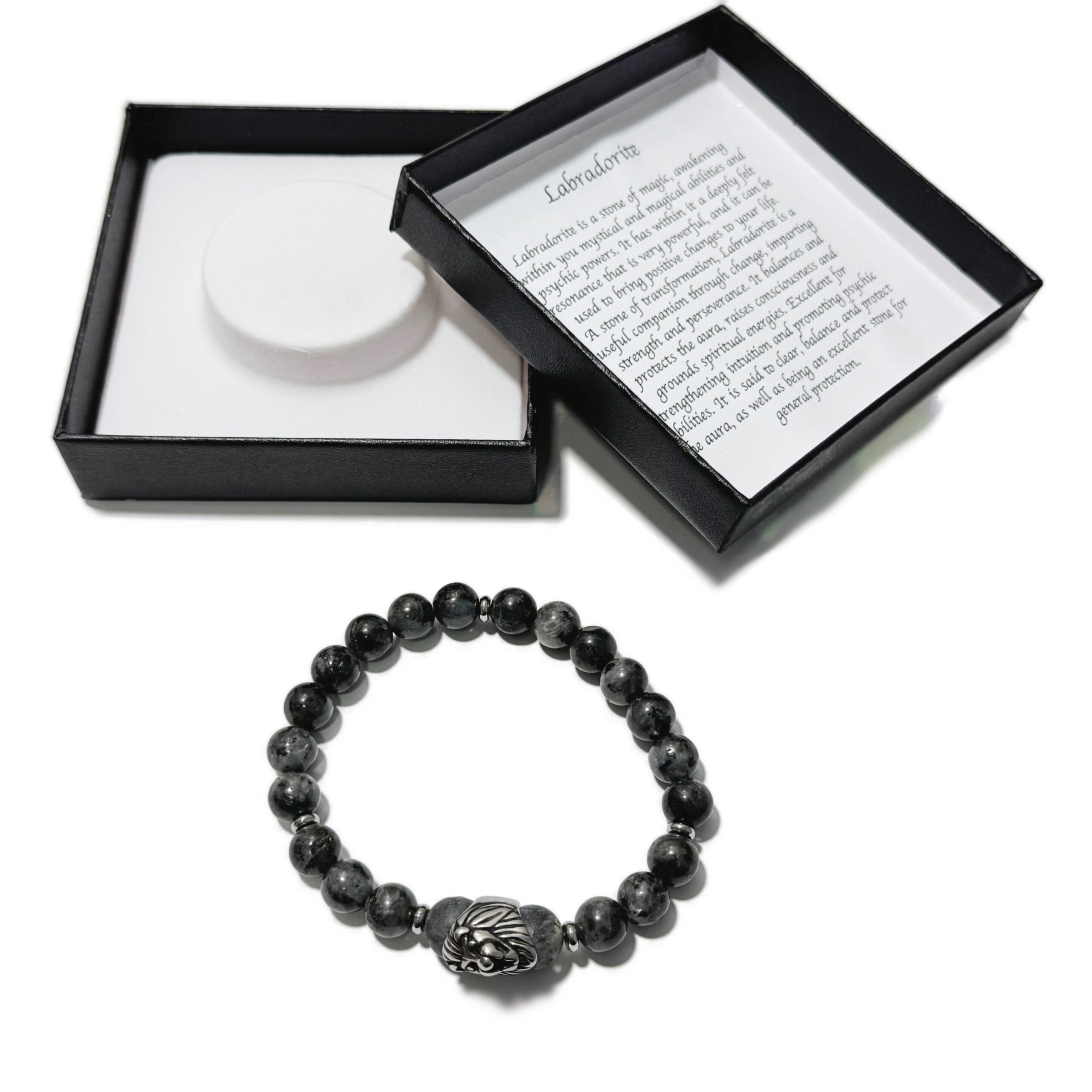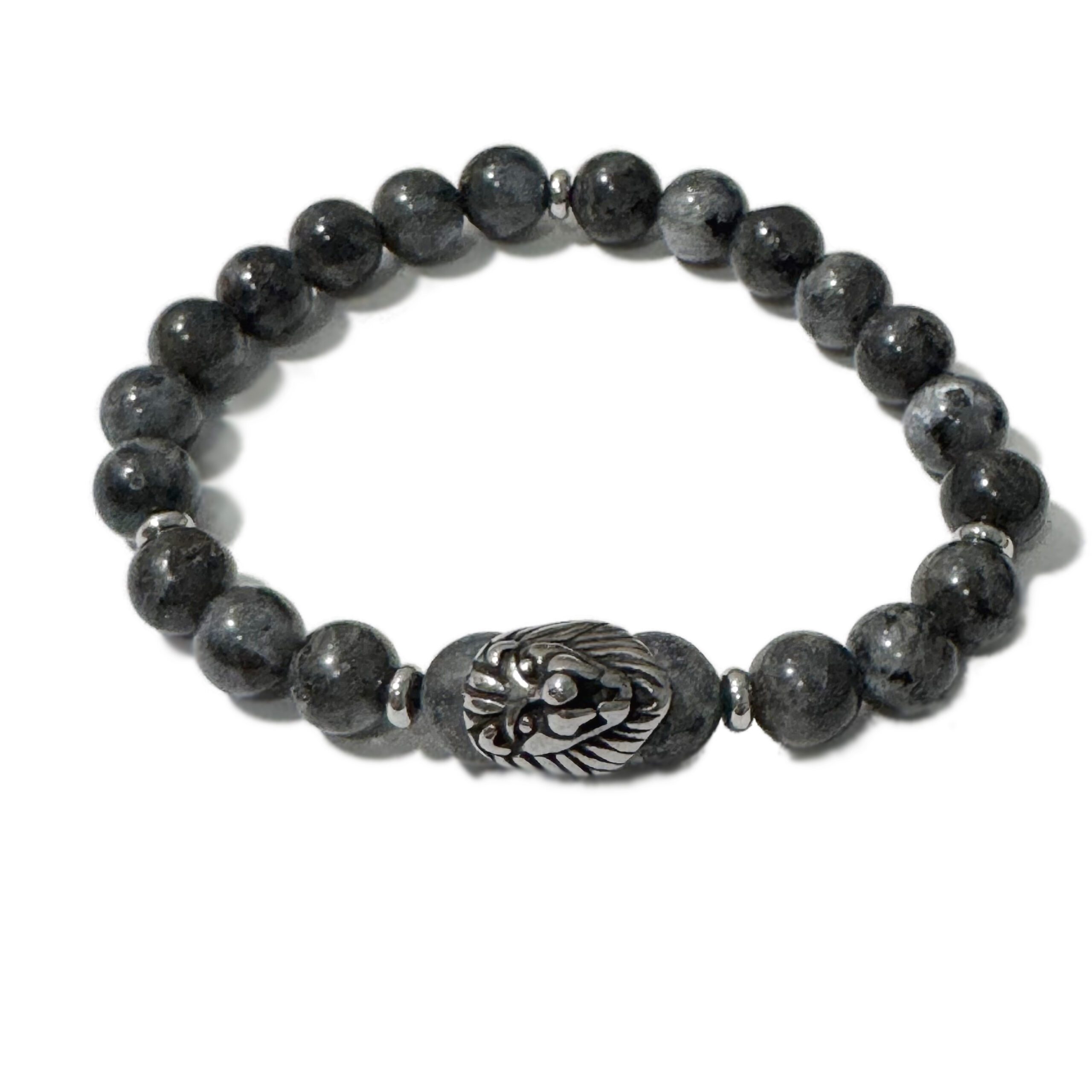 Men’s Bracelet Dark Labradorite & Lion Head Bead