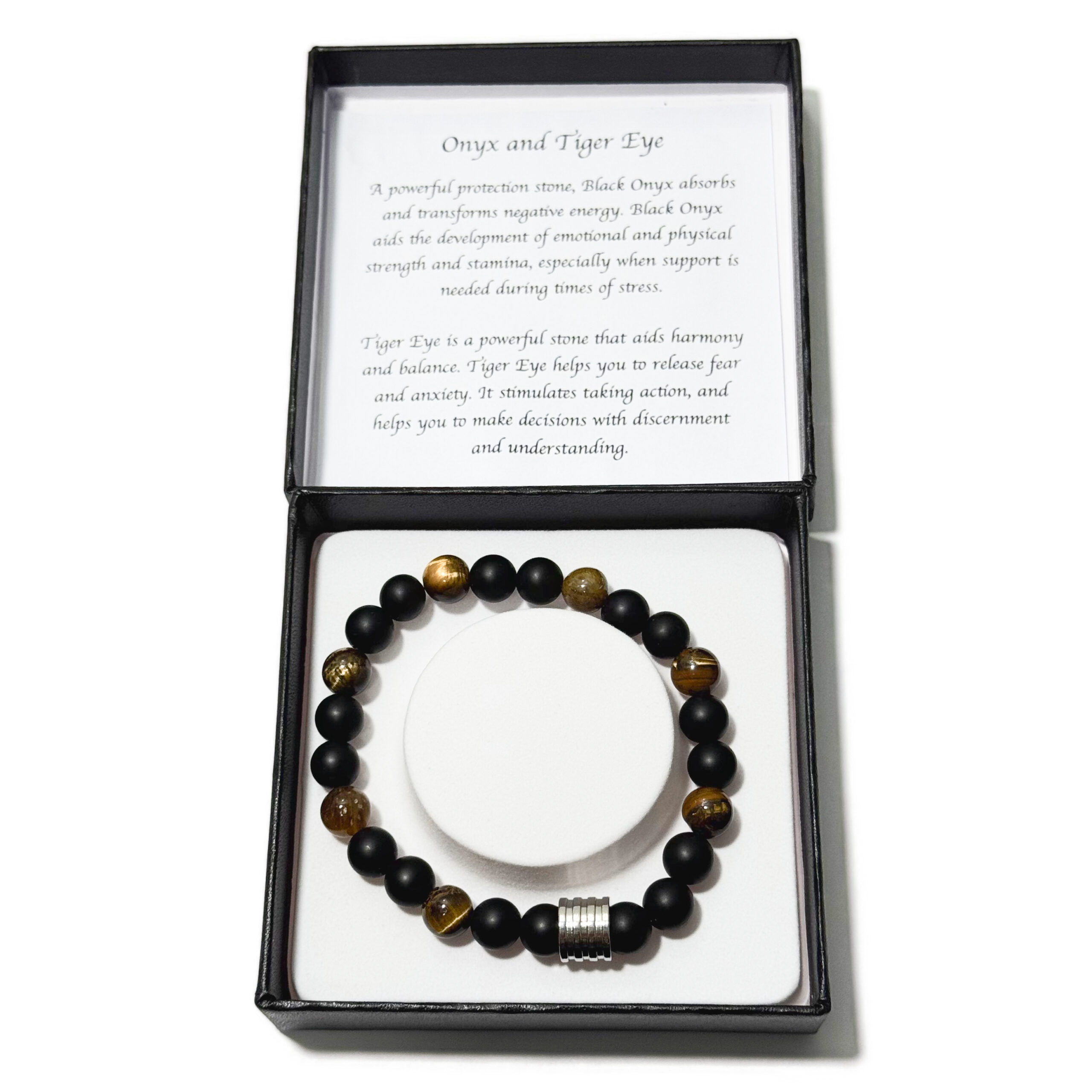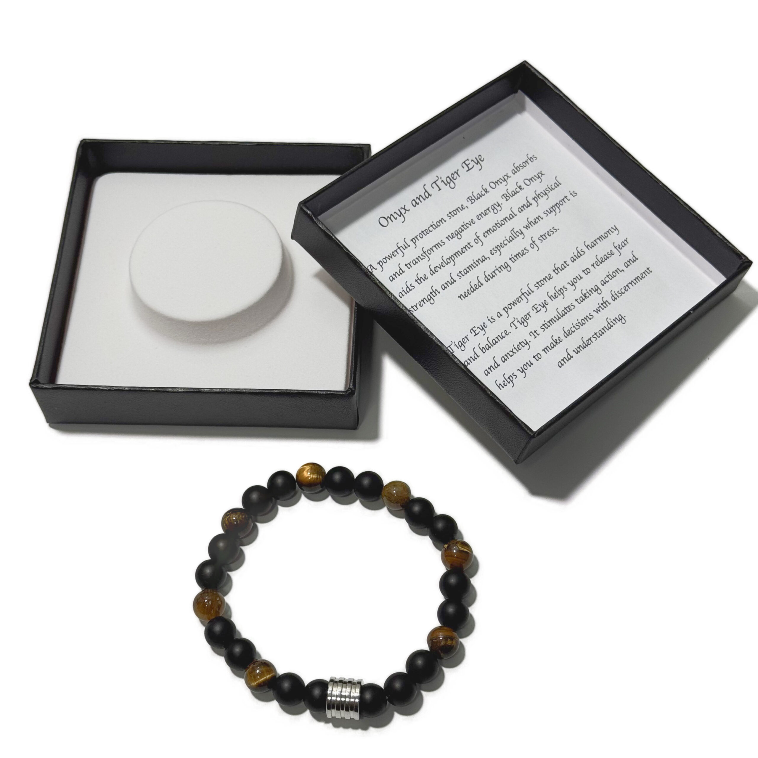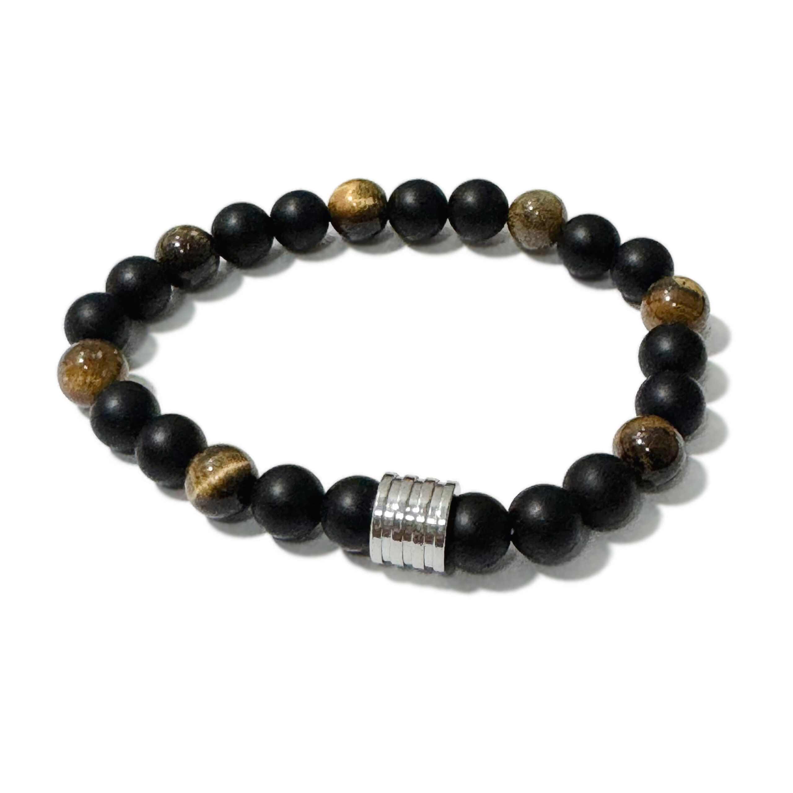 Men’s Bracelet Matte Onyx+Tiger Eye & 4 Ring Bead