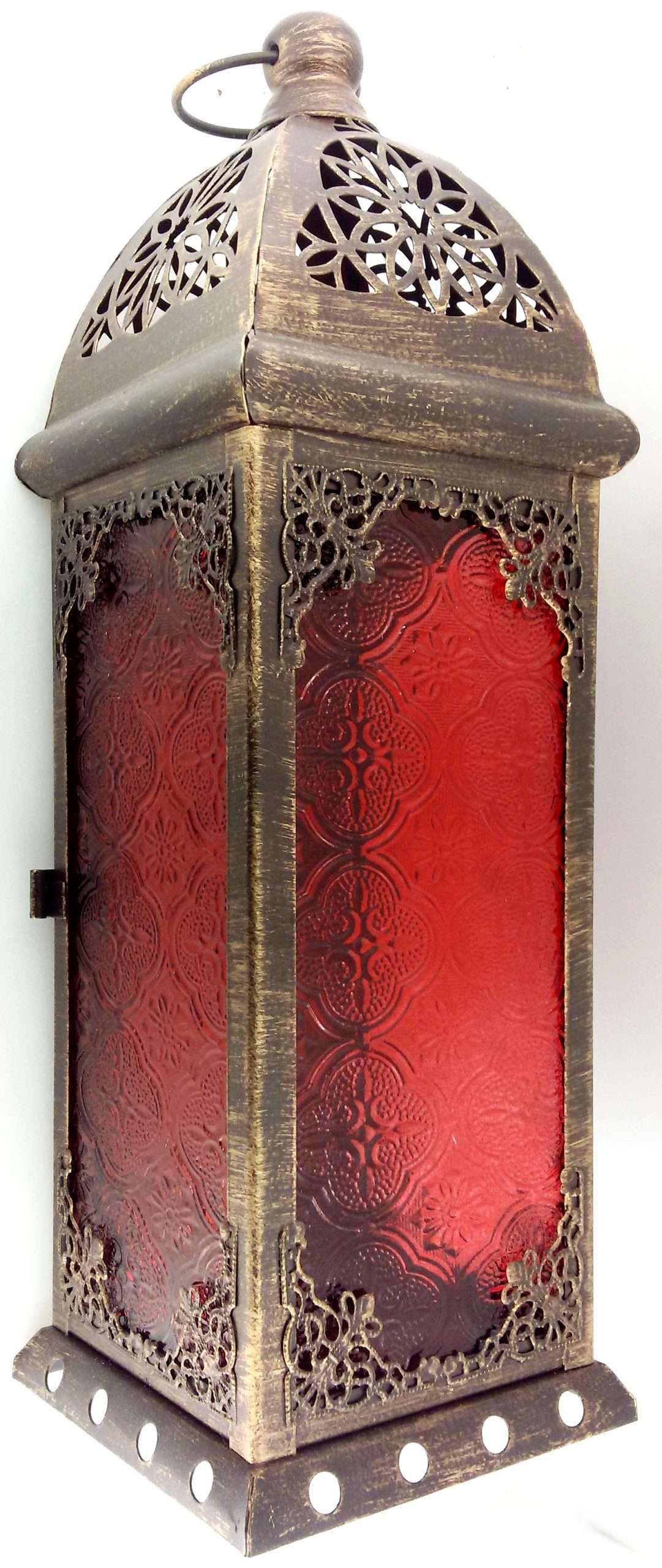 Moroccan Lantern Bronze Frame Red Glass