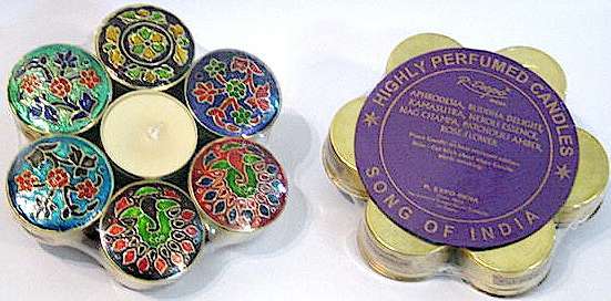 Song of India Perfumed Candles in Brass Jars Set of 7