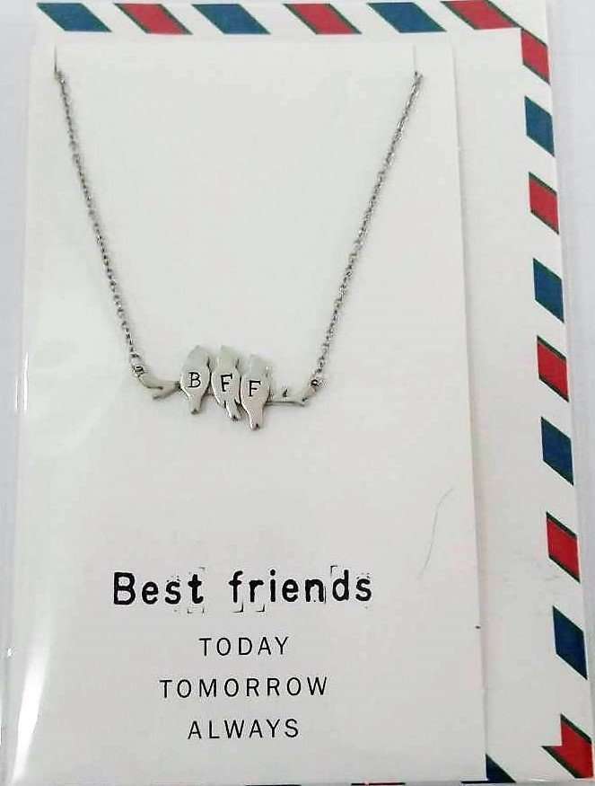Best Friends pewter charm on stainless steel chain
