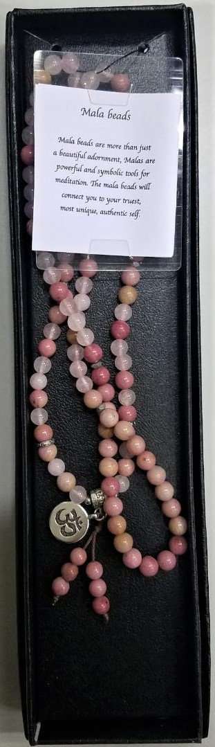 Rhodochrosite and Rose Quartz Mala Necklace- 108 Beads