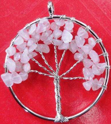 Rose Quartz Tree of Life Pendant Set of 2