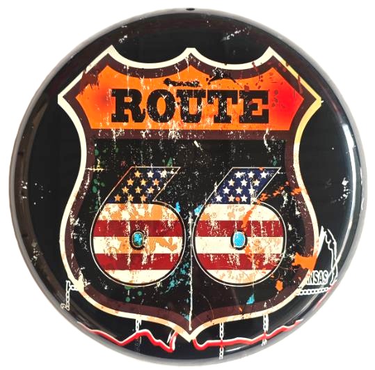 Round Metal Wall Art Route 66
