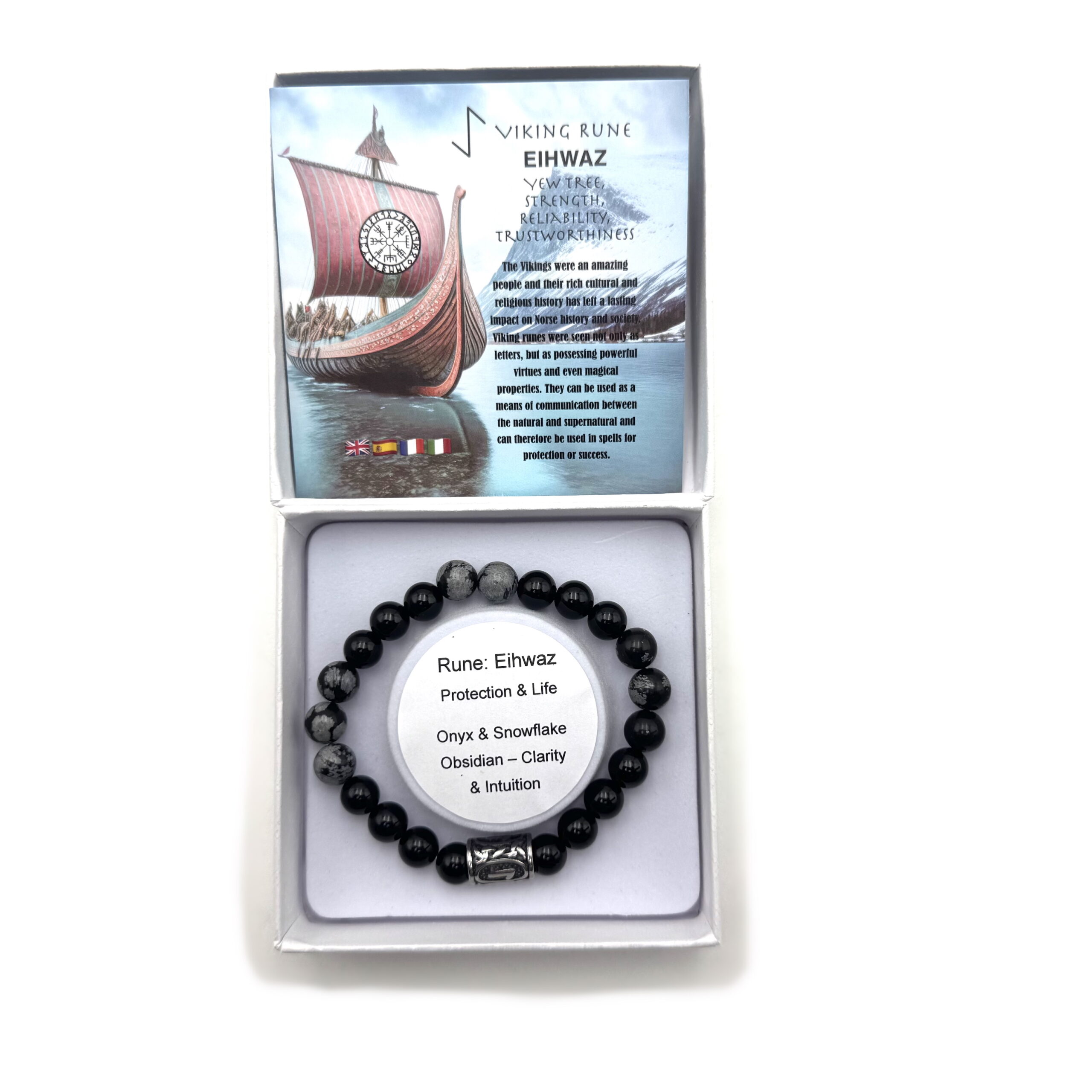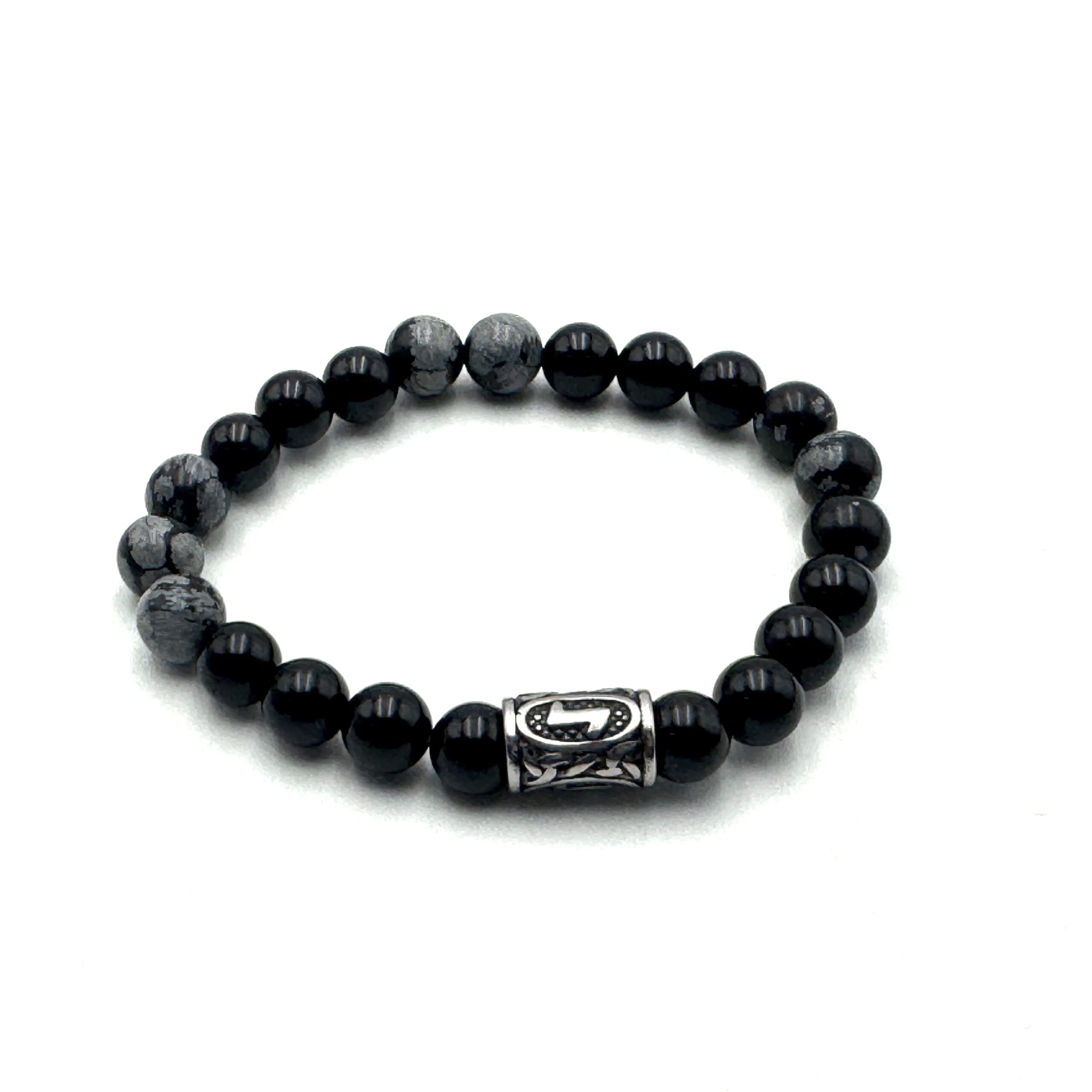 Rune Bracelet Onyx & Snowflake Obsidian Elhwaz