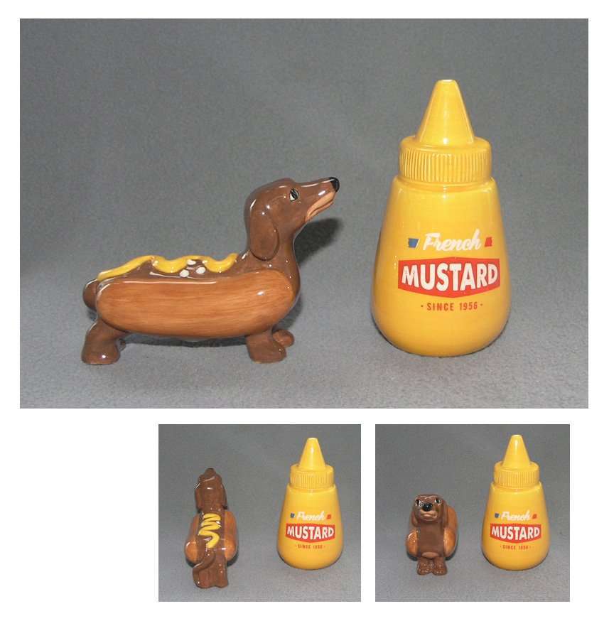 Sausage Dog in Bun and Mustard Salt Pepper