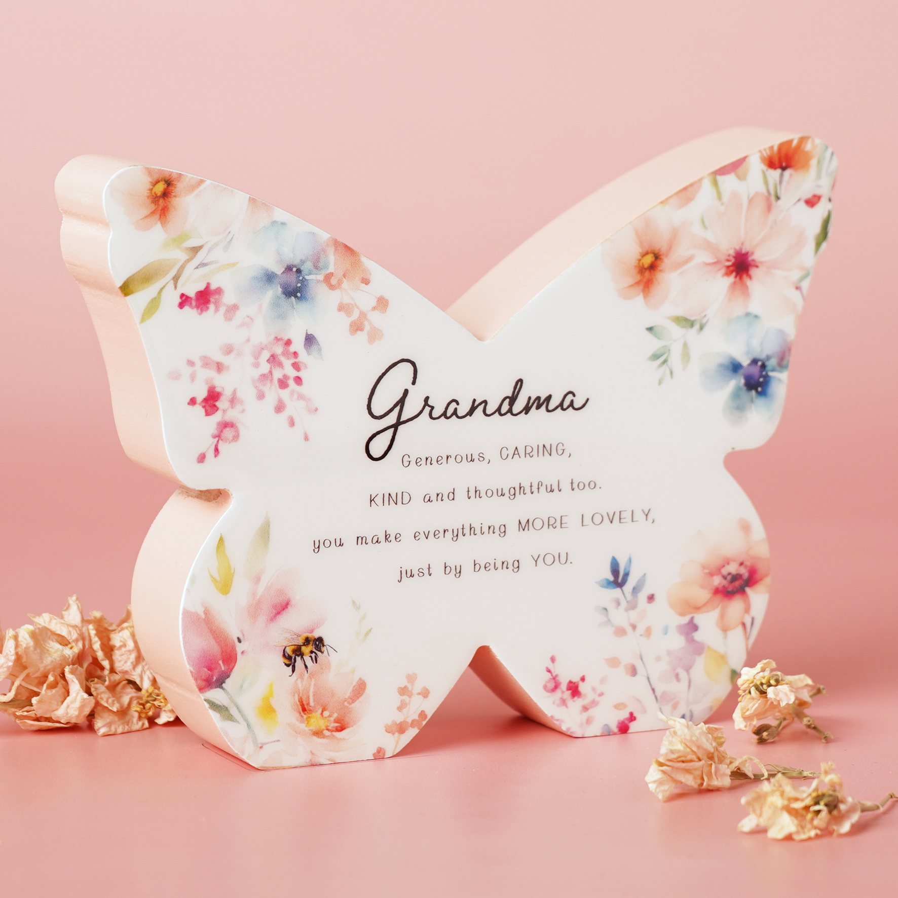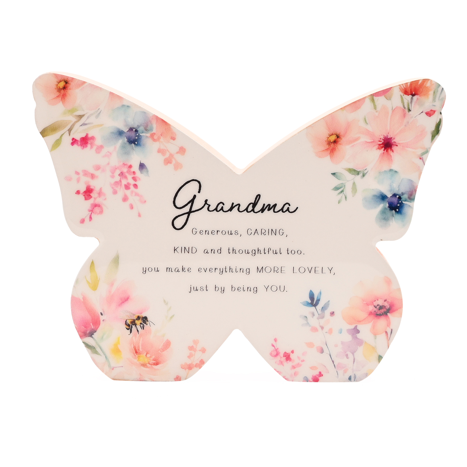 The Cottage Garden Floral Mantel Butterfly is a gift with a floral contemporary twist. With its bold butterfly silhouette, soft floral prints, and short uplifting message, it’s a versatile piece that fits seamlessly on shelves, desks, or mantelpieces. A go-to gifting choice for birthdays, thank-yous, or spontaneous gestures, it adds instant colour and personality to any space. Part of the Cottage Garden collection – outdoor-inspired keepsakes made to celebrate friends, family, and everyday connections.