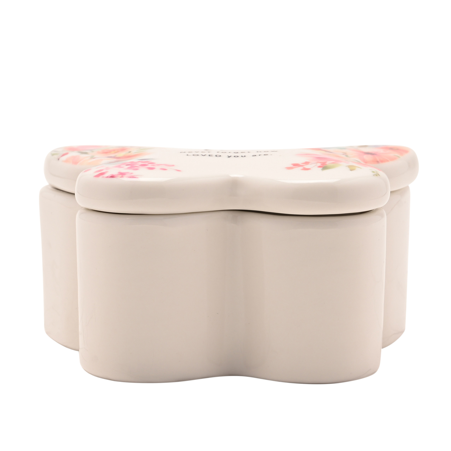 The Cottage Garden Trinket Box – Nan is a butterfly-shaped ceramic keepsake finished with soft watercolour floral artwork and uplifting wording. Compact and practical, it’s the perfect spot for storing jewellery, small treasures, or everyday essentials. With its decorative shape and colourful finish, it doubles as both storage and display, making it a versatile gift option for occasions like Mother’s Day, birthdays, or as a stylish home accent.