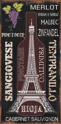 Wall Art on MDF Board Red Wine Paris 30 x 60cm