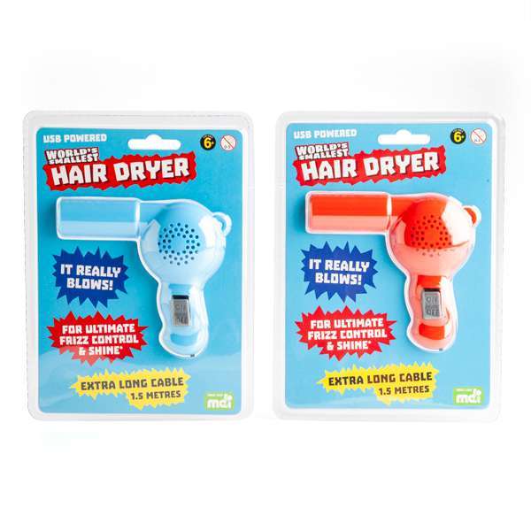 - USB-powered mini hair dryer that’s perfectly sized for drying a fringe or doll’s hair